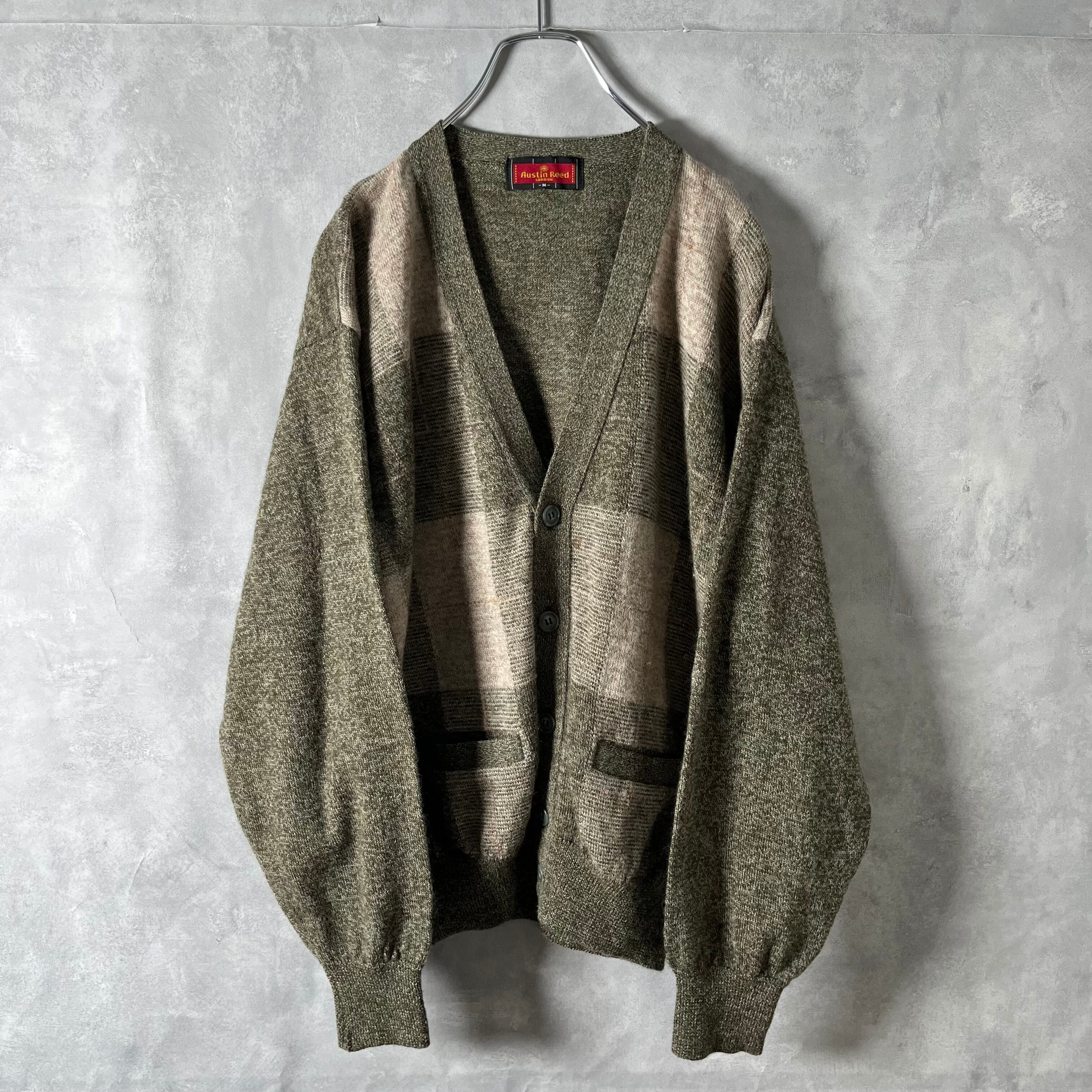 #6011 "Austin Reed" check pattern wool cardigan