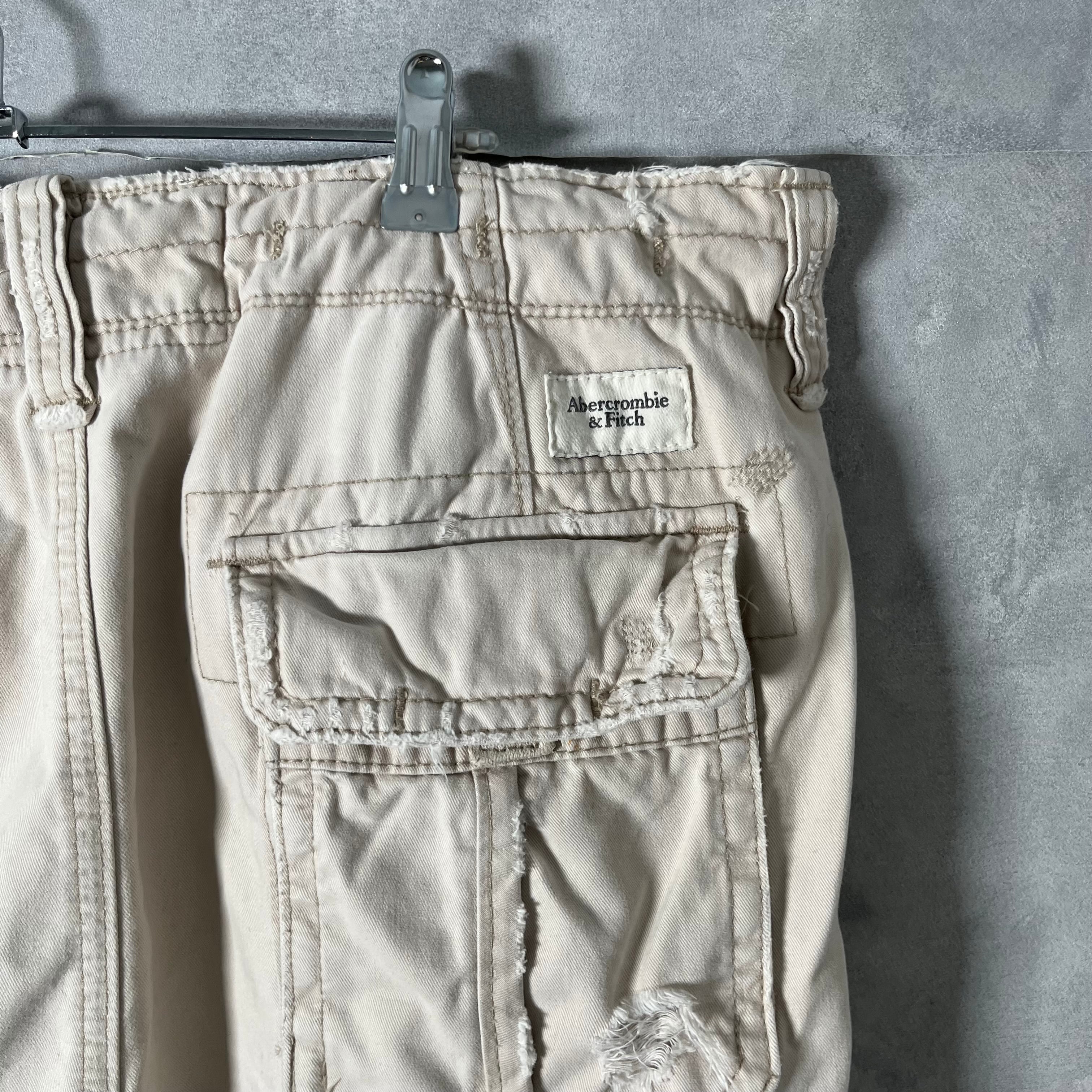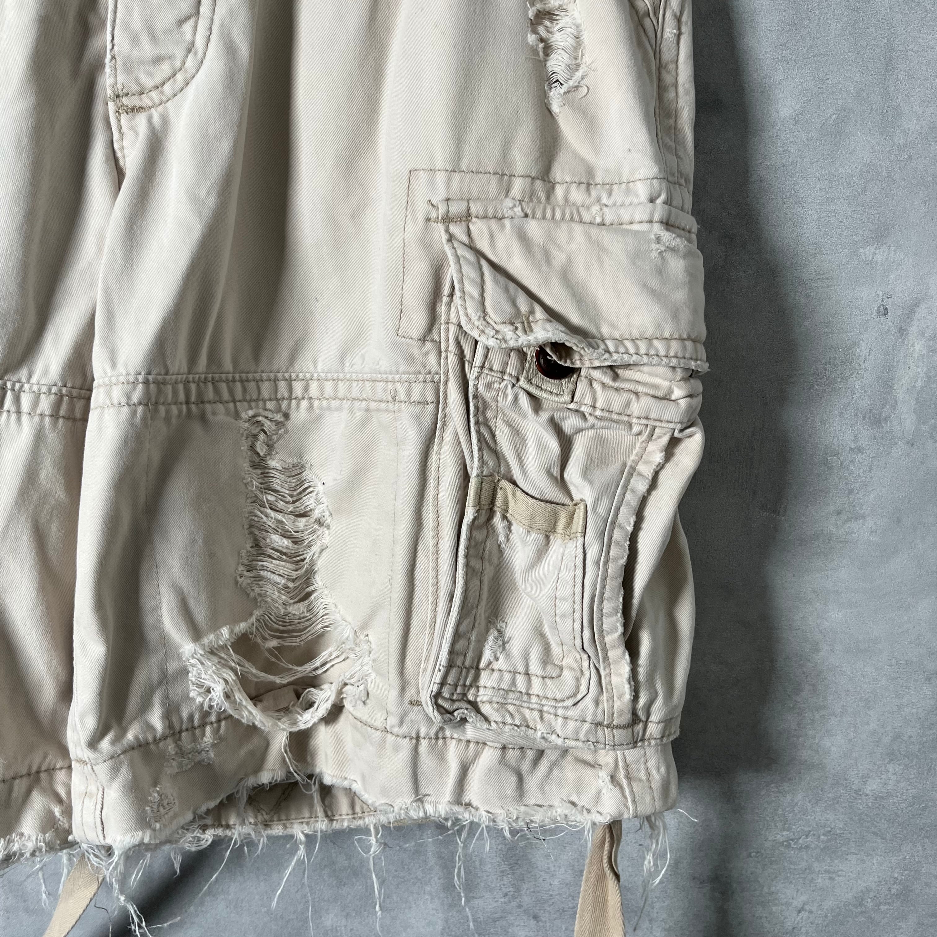 #6214 "Abercrombie&Fitch" damage wide cotton half pants