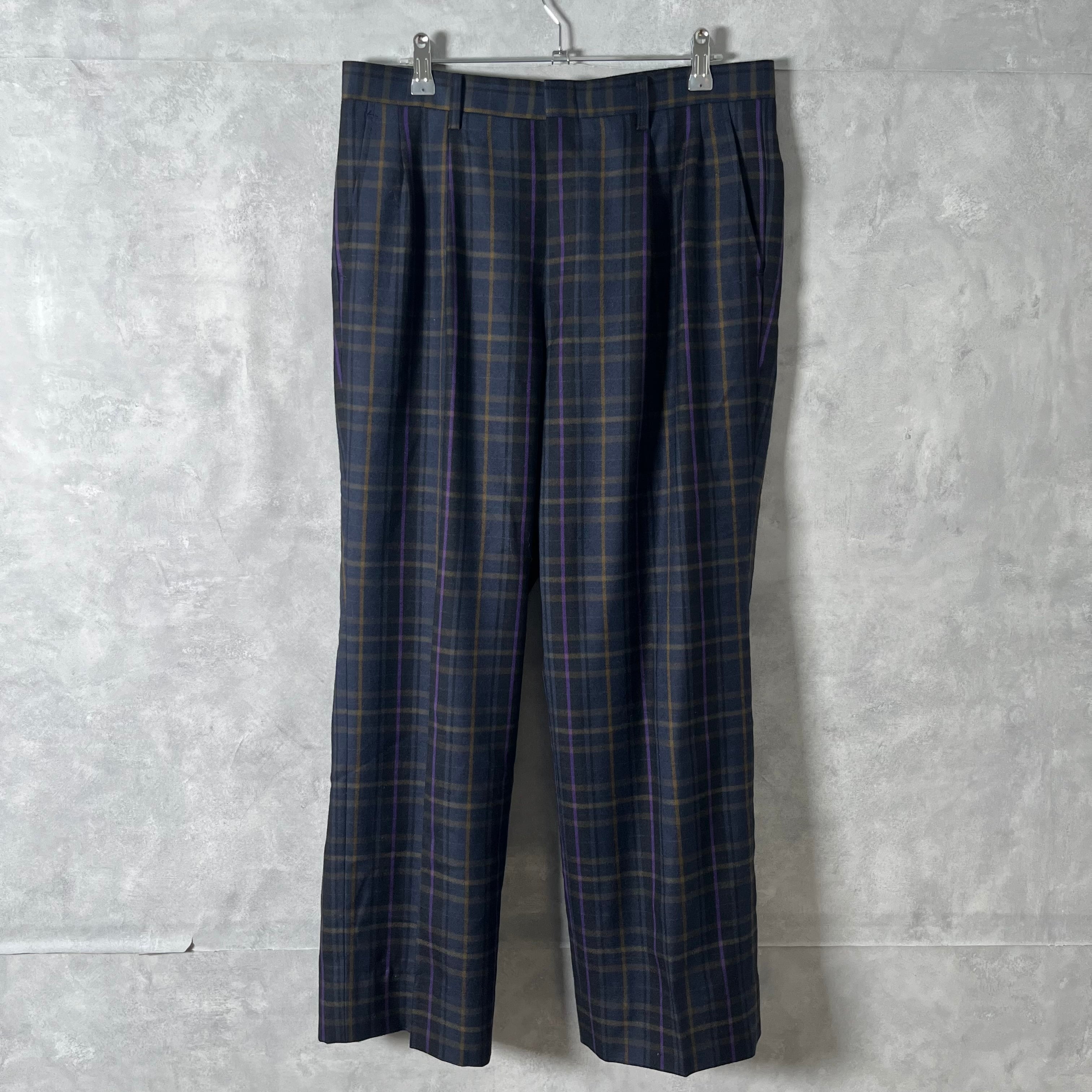 #6279 check pattern wool straight slacks pants