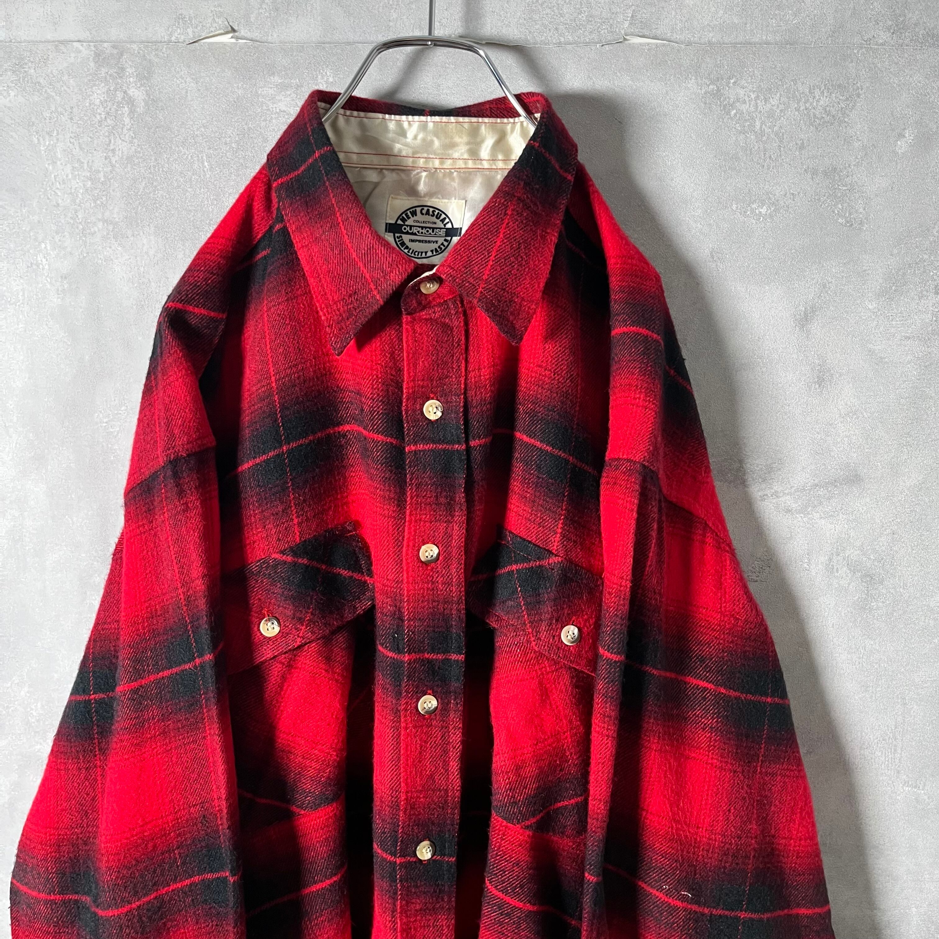 #6634 retro tartancheck pattern flap flannel shirt