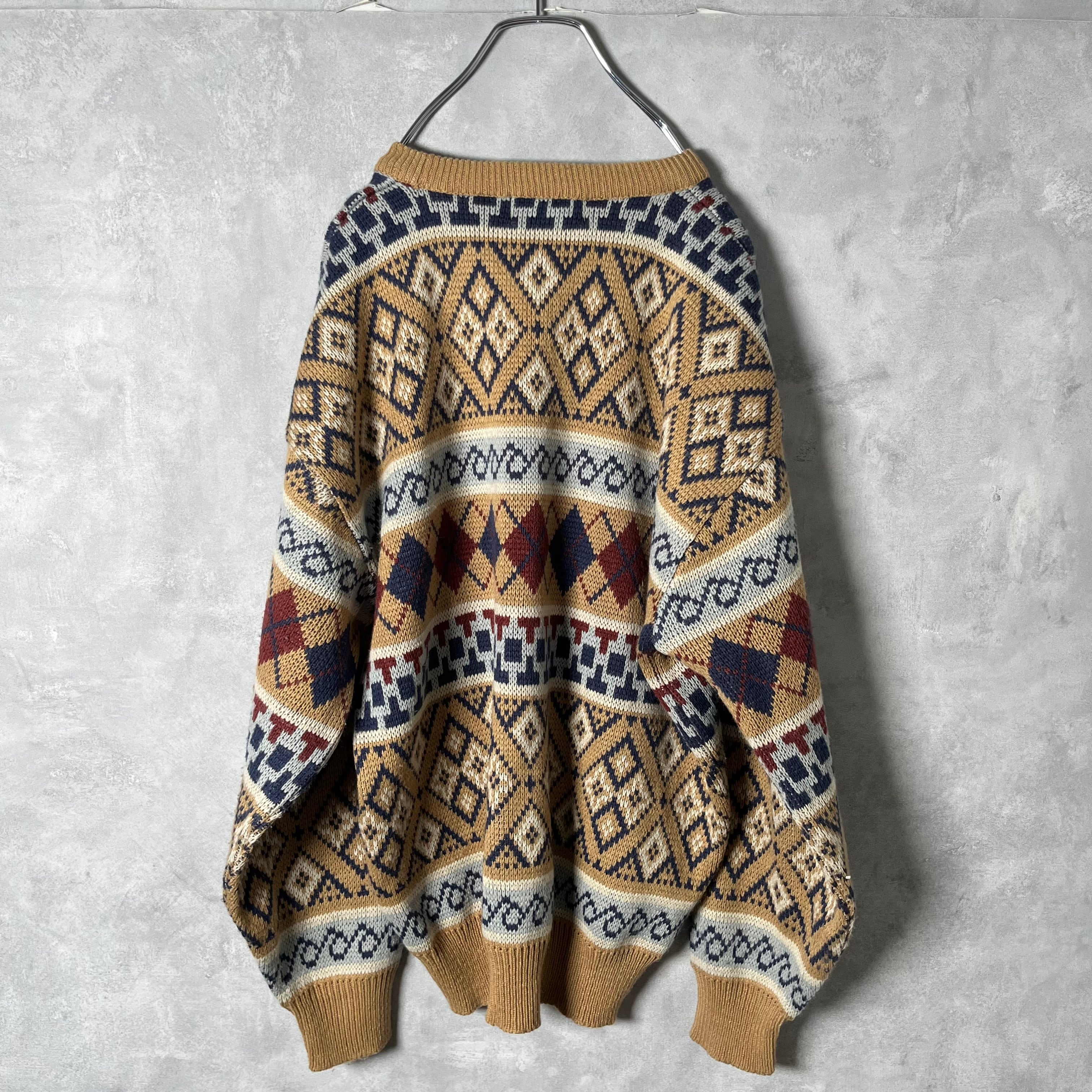 #6762 retoro argyle pattern design acryl knit