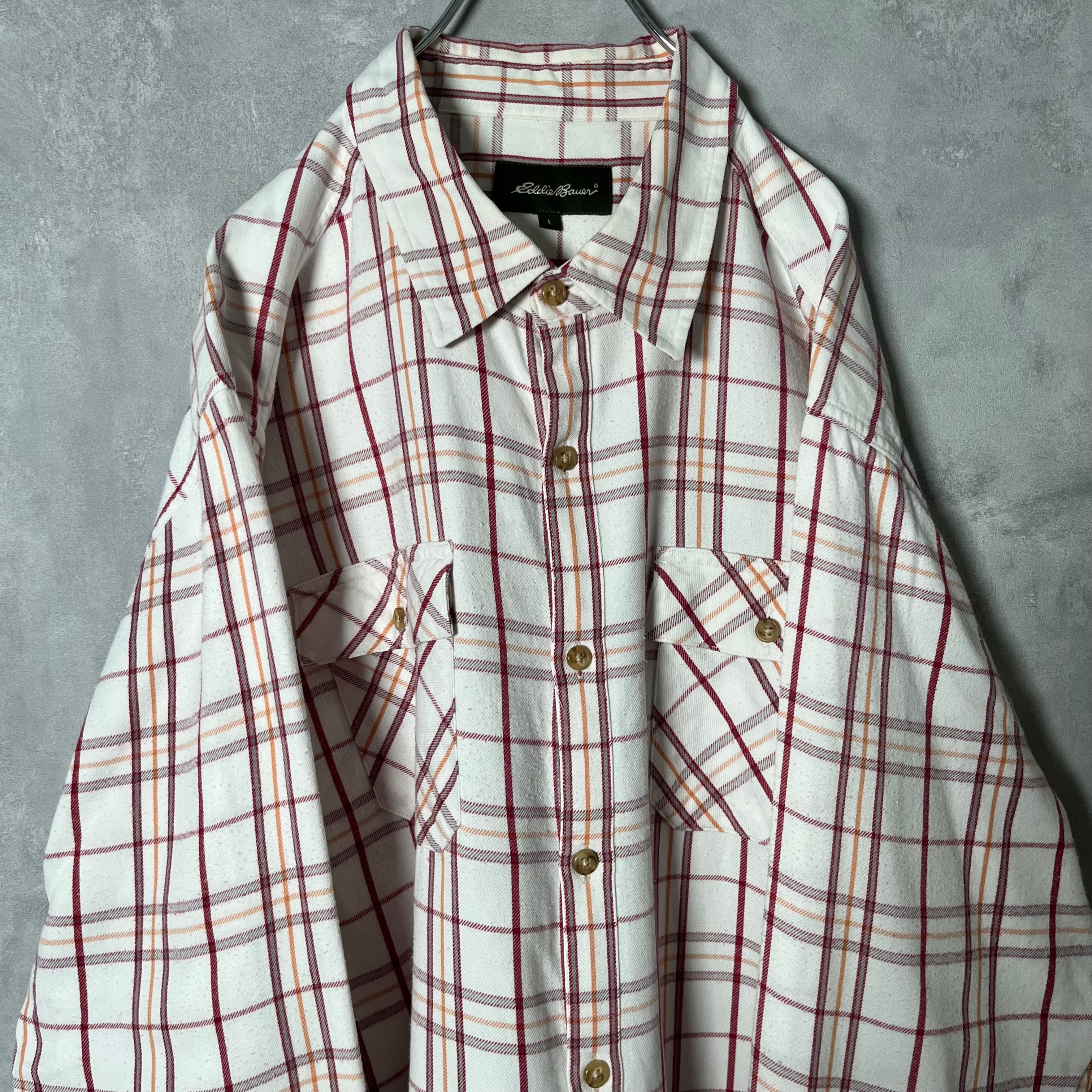 #6827 "Eddie Bauer" check pattern flap cotton shirt