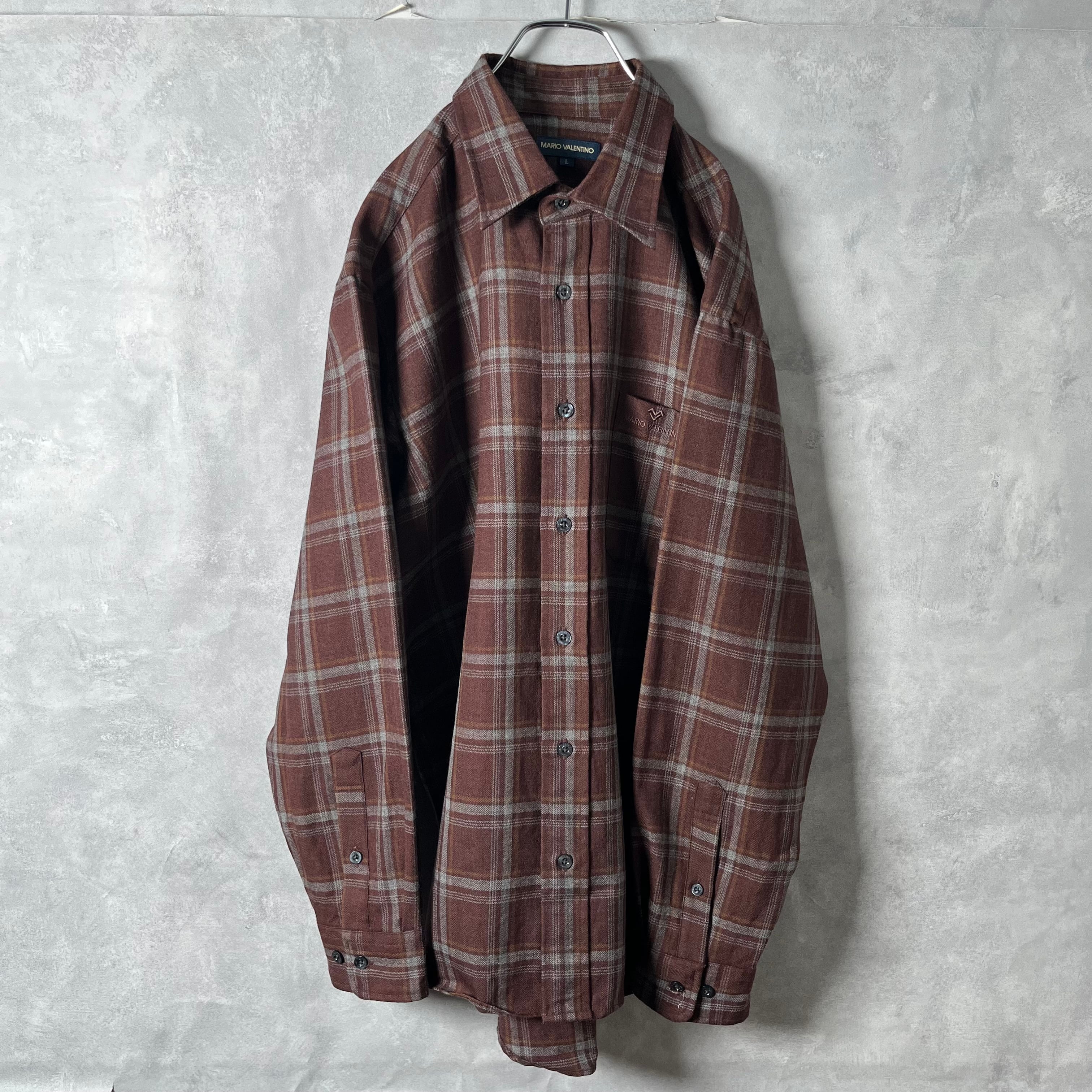 #6898 "MARIO VALENTINO" check pattern wool shirt