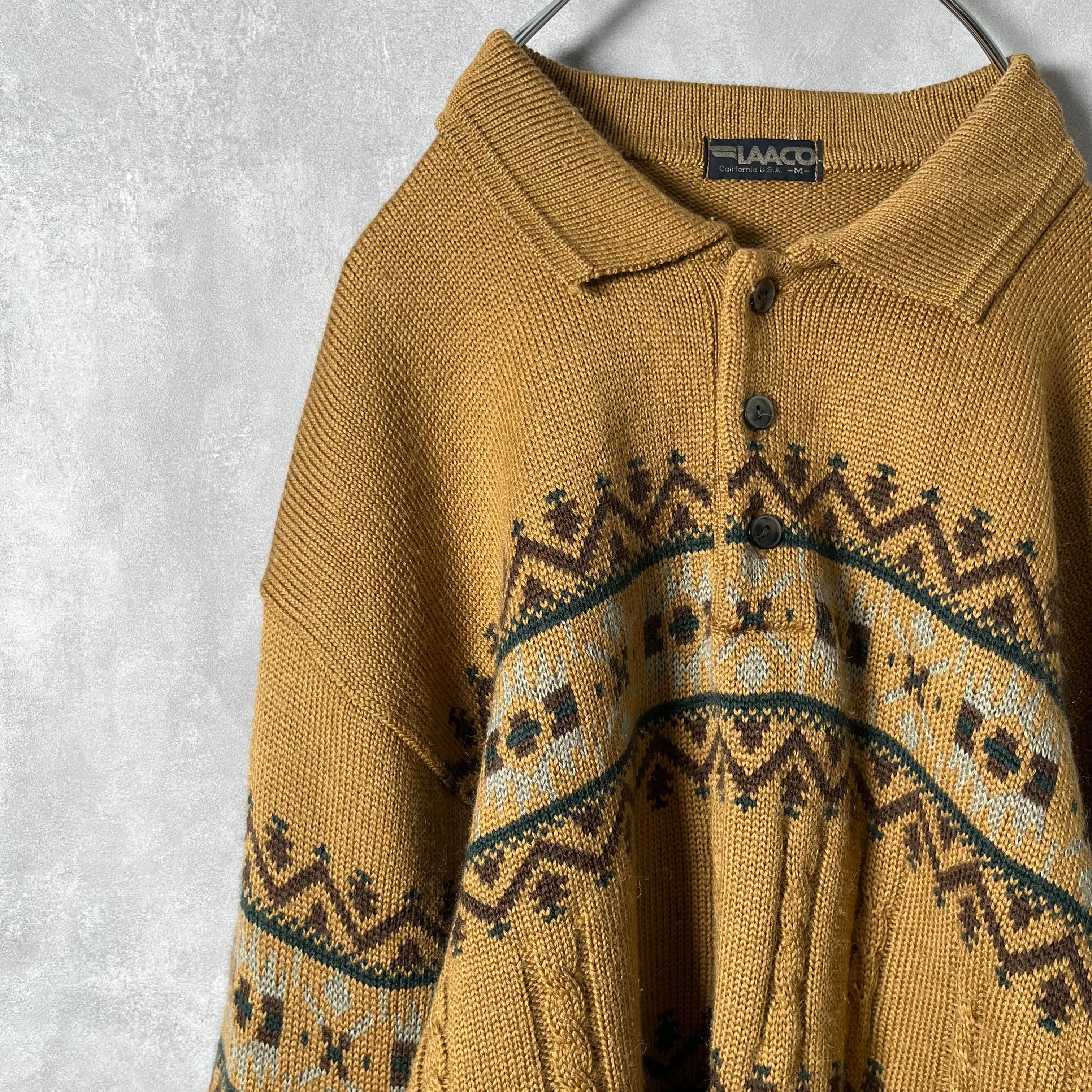 #6973 retoro geometric pattern acrylic wool knitpolo