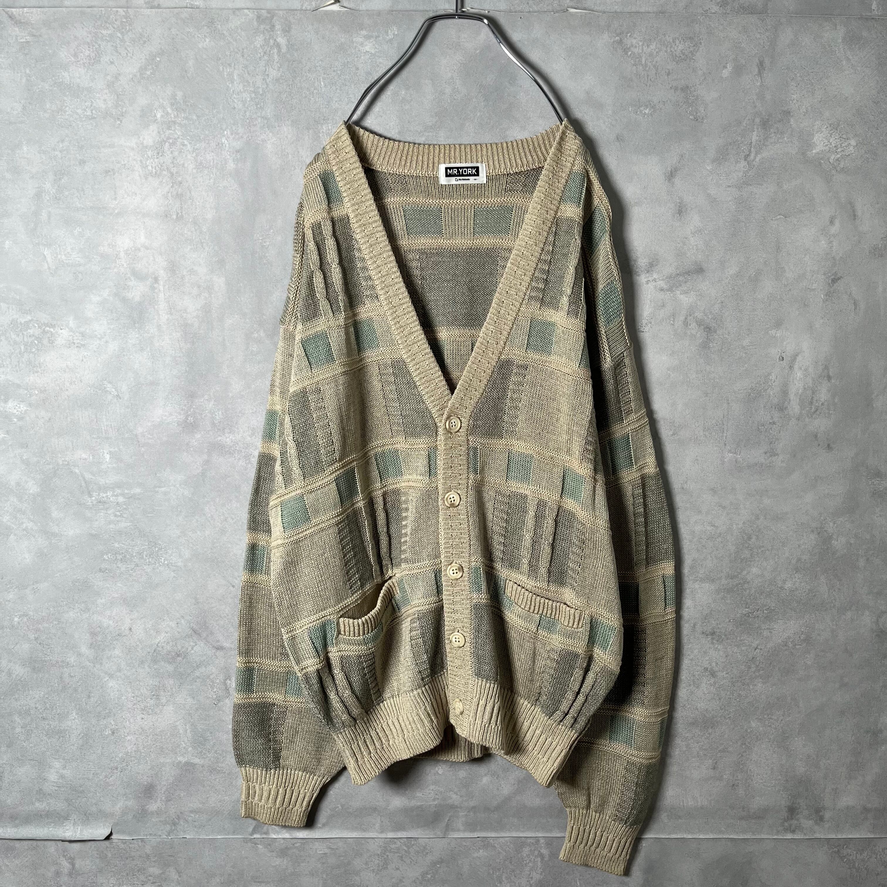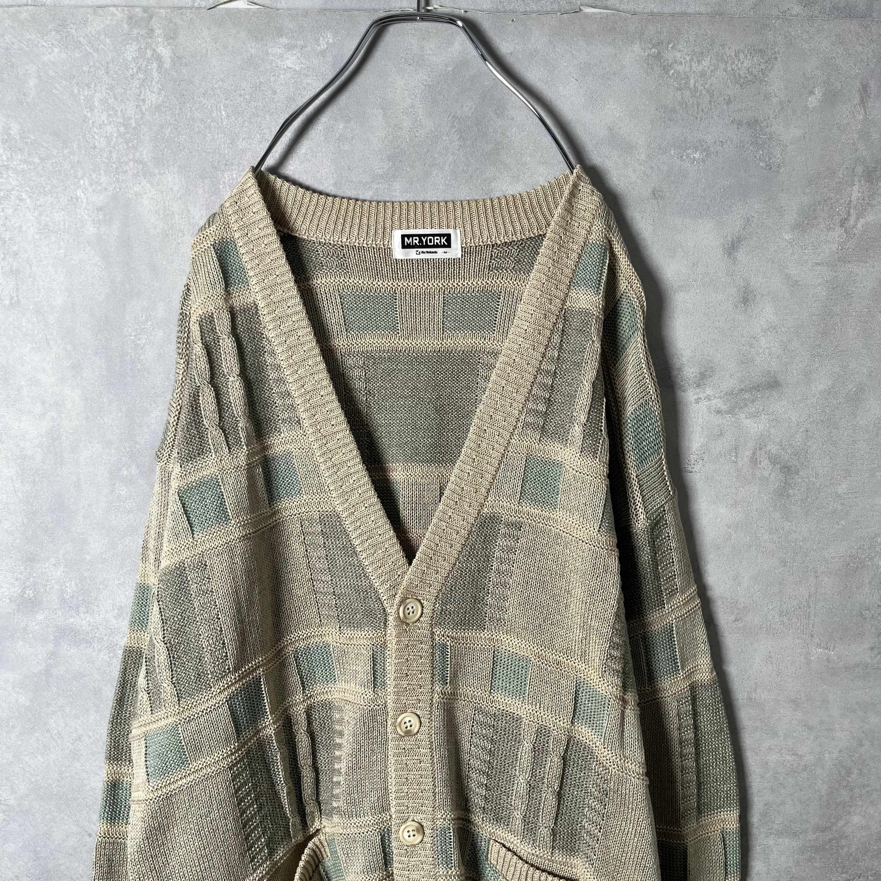 #6996 retoro geometric pattern acrylic linen cardigan