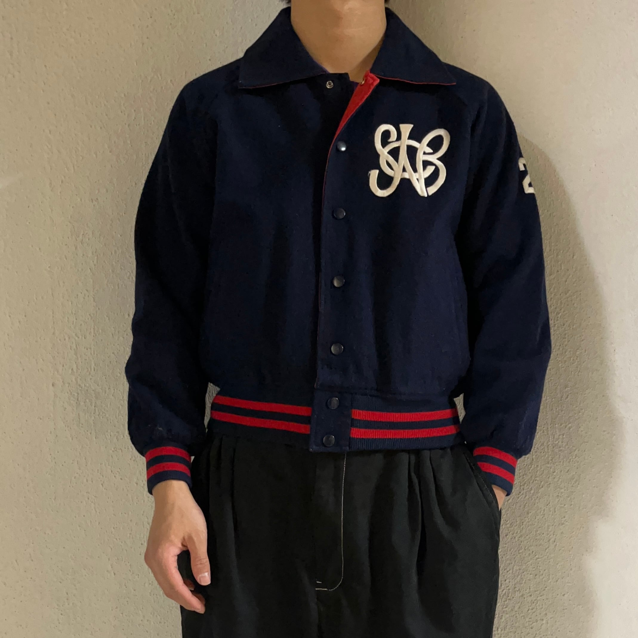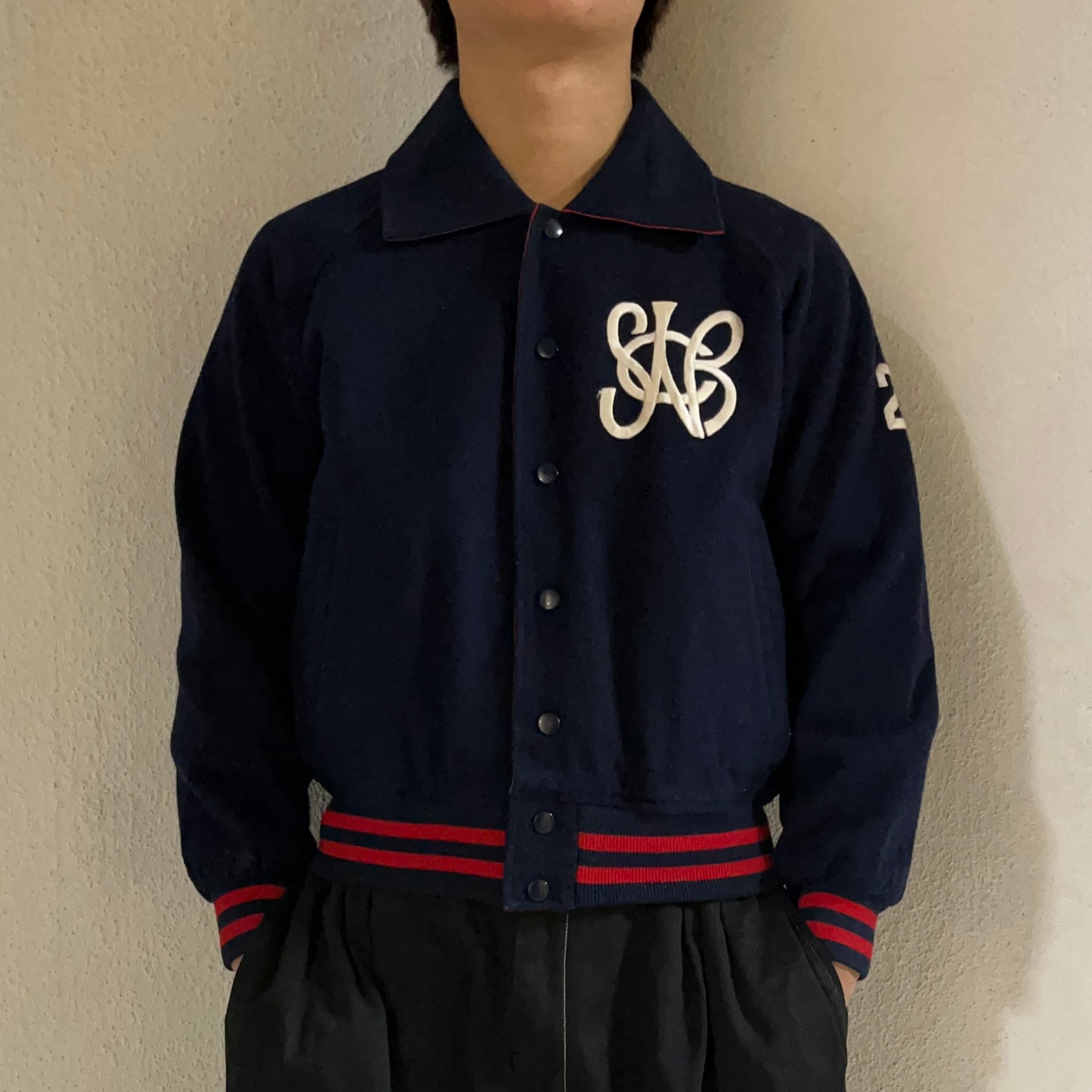 #7081 "DESCENTE" embroidered design wool blouson jacket
