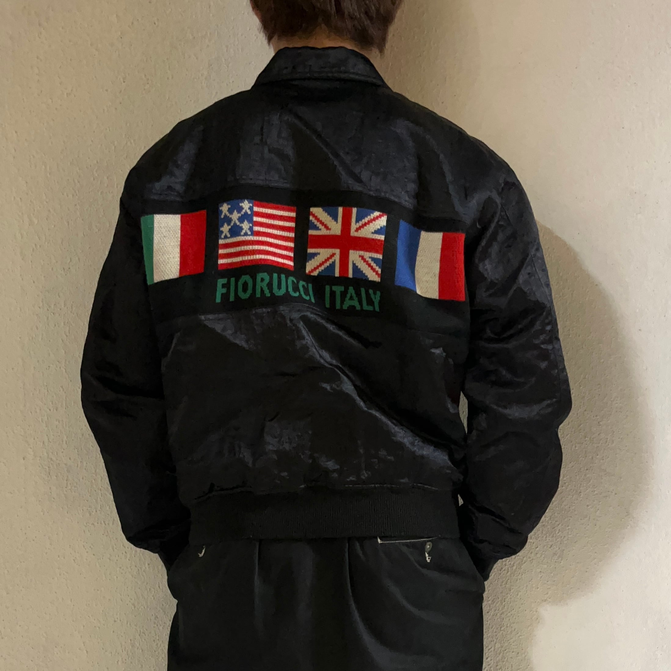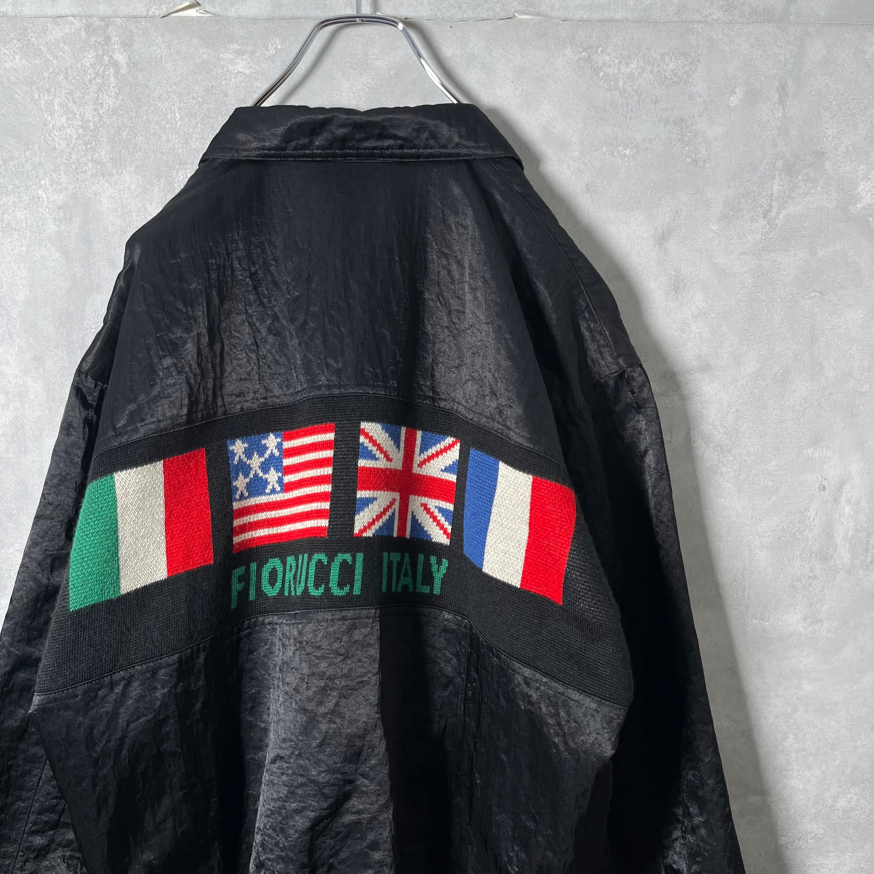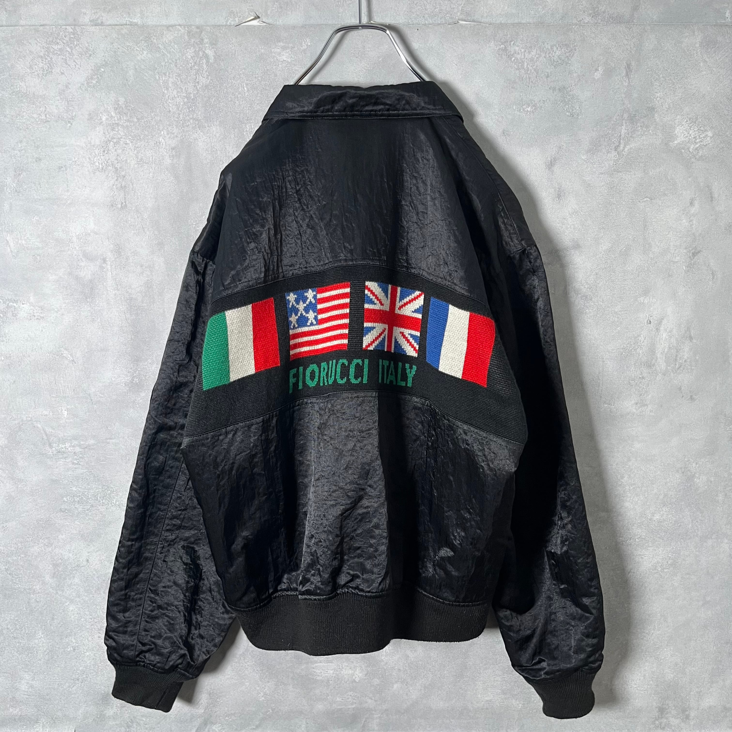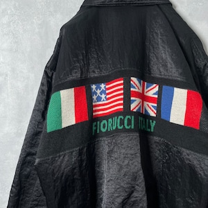 #7083 «special» "FIORUCCI" embroidered gimmick national flag design nylon blouson