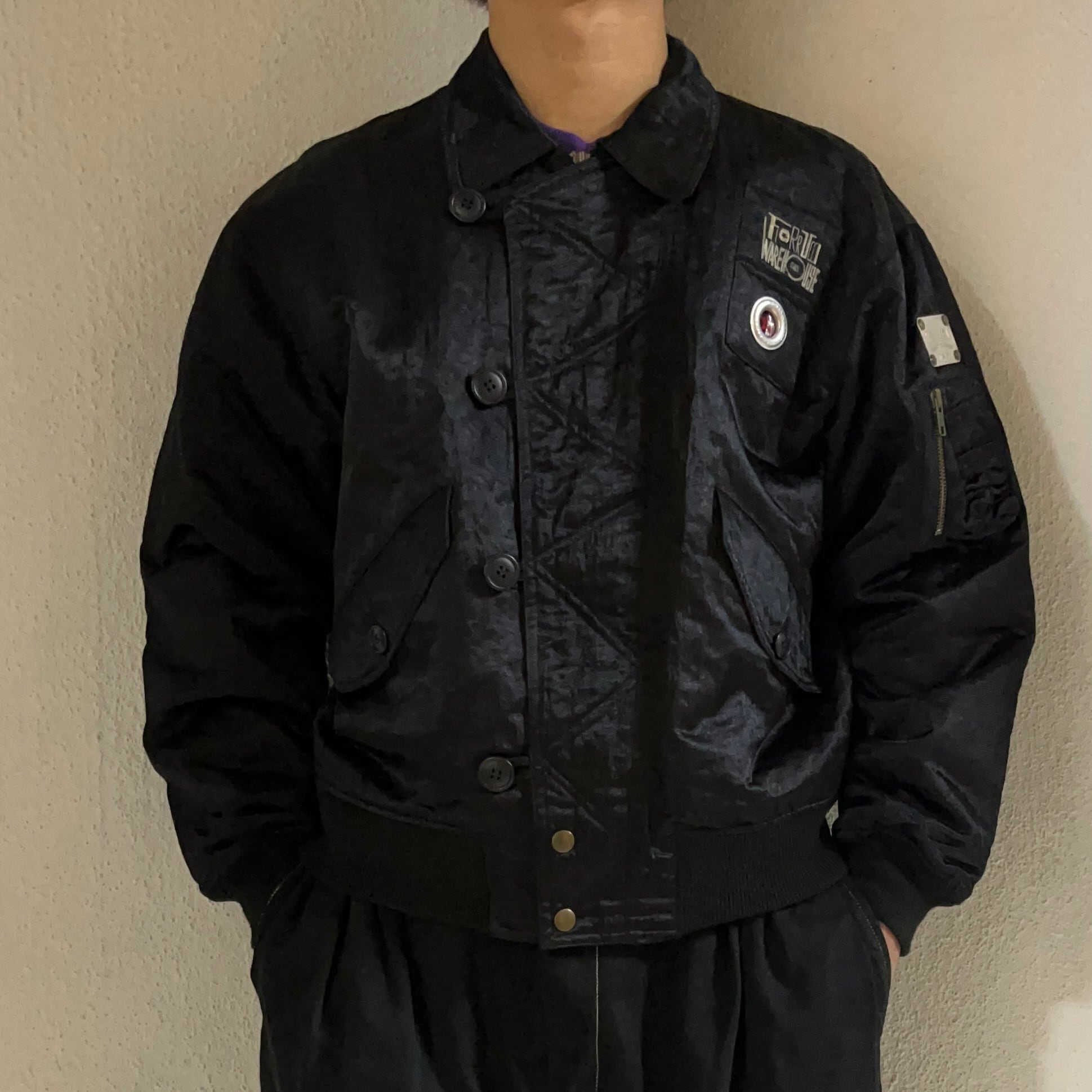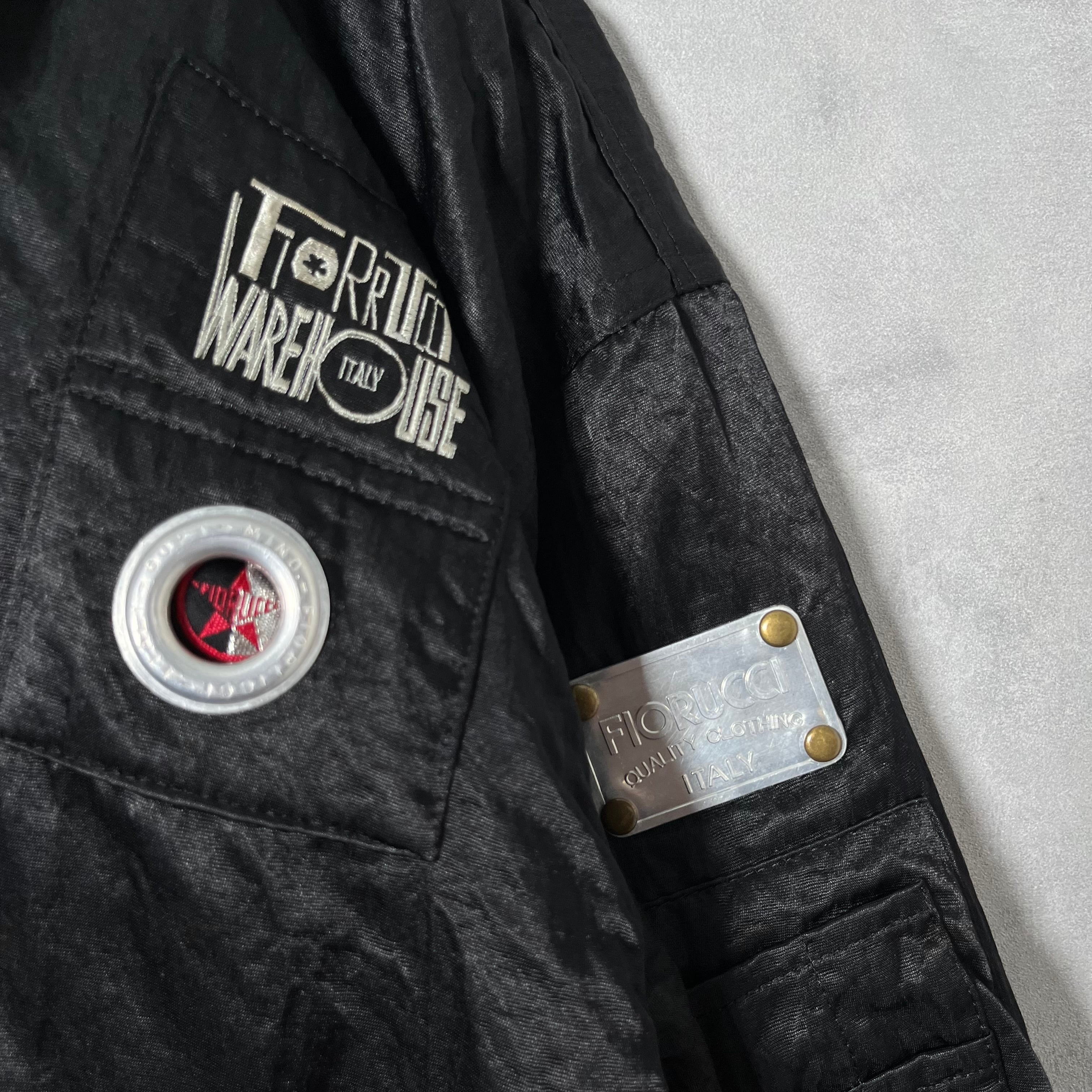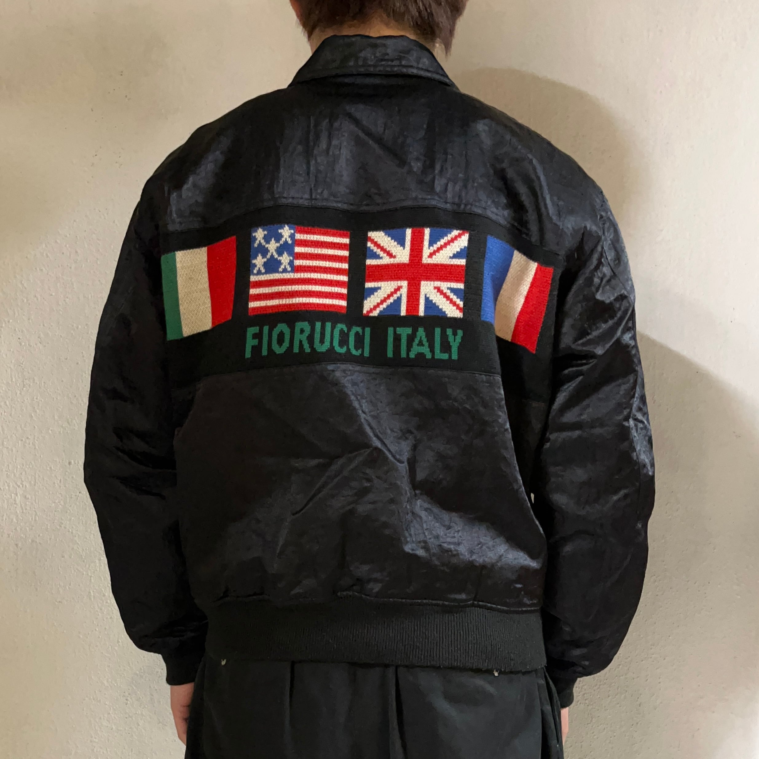 #7083 «special» "FIORUCCI" embroidered gimmick national flag design nylon blouson
