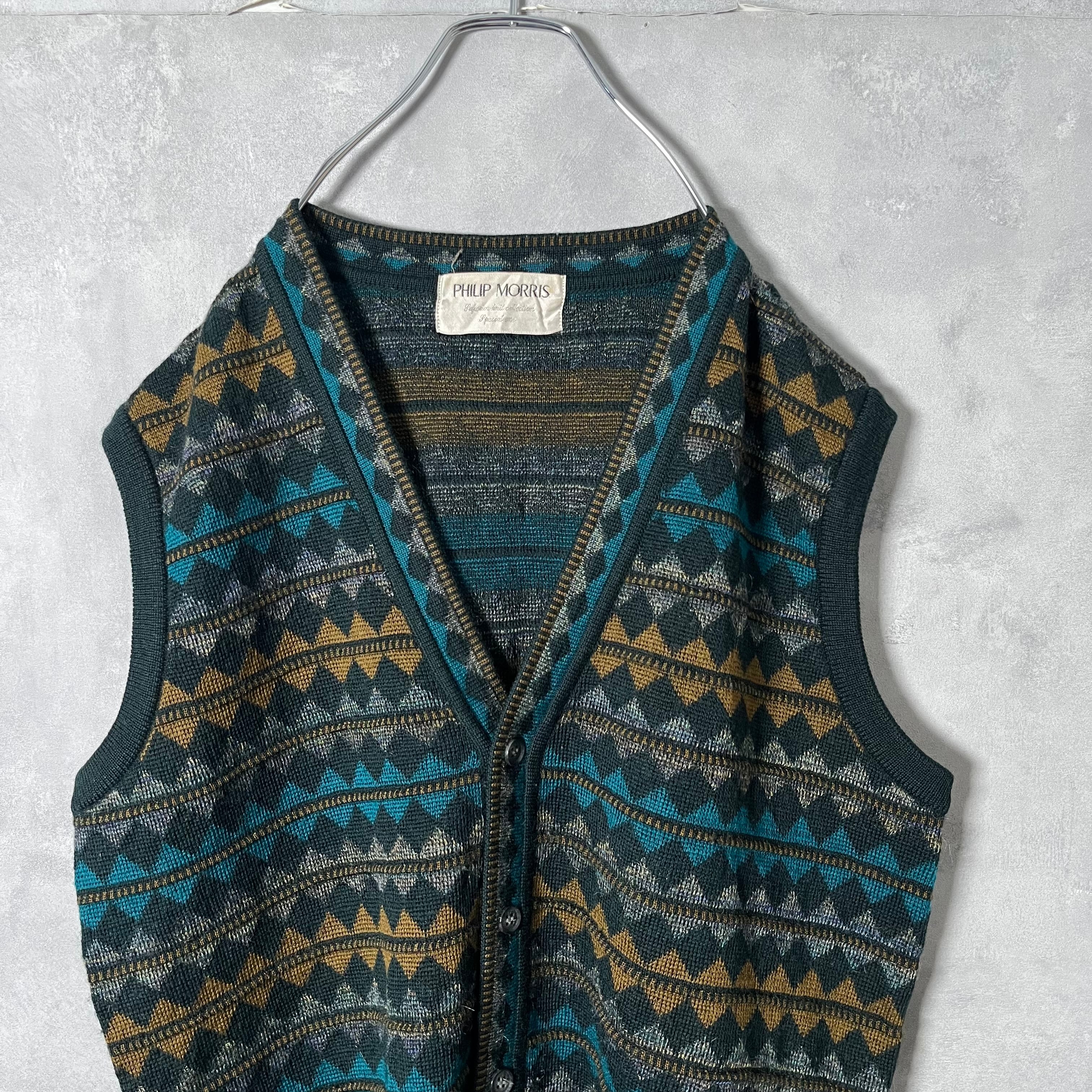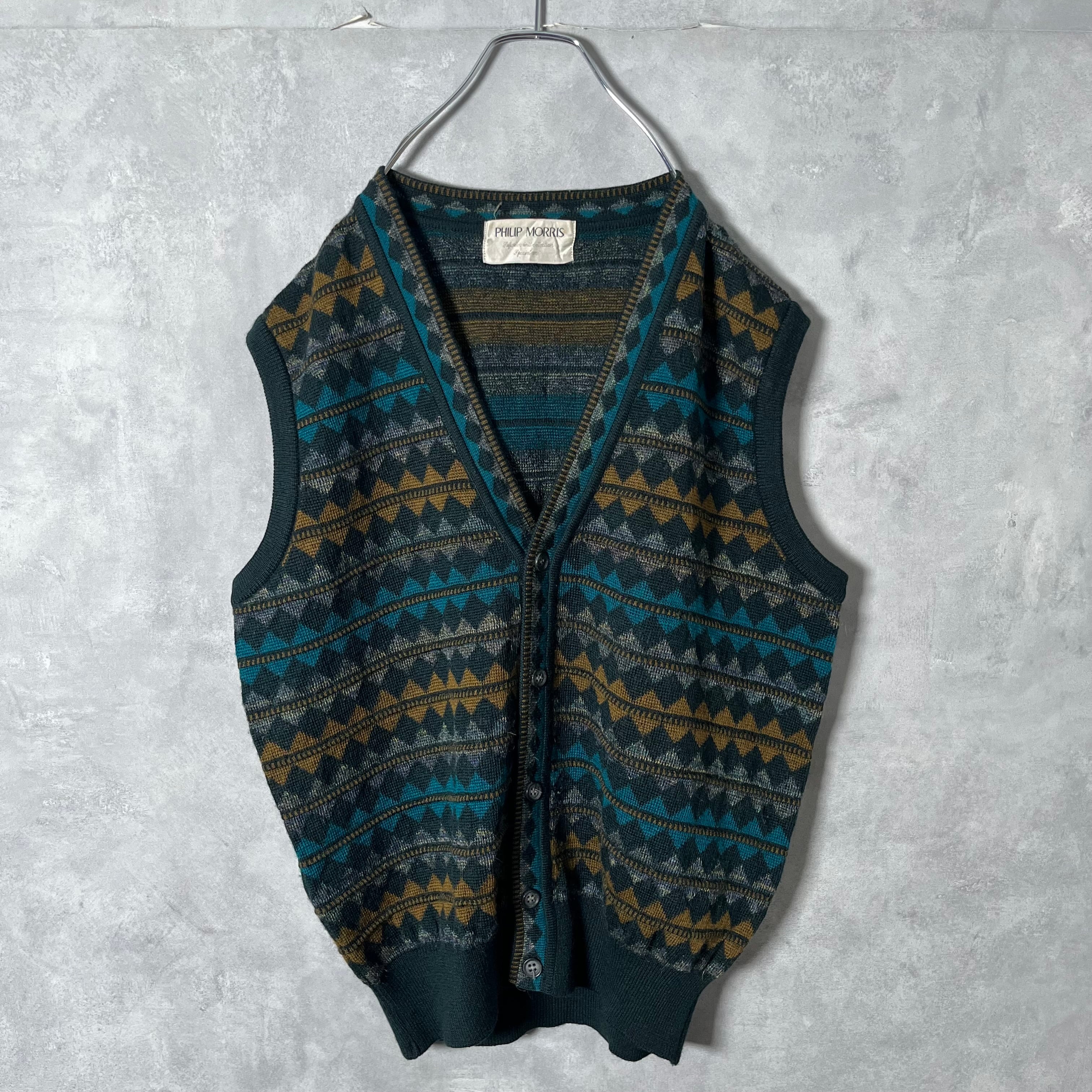 #7086 "PHILIP MORRIS" argyle pattern wool knit