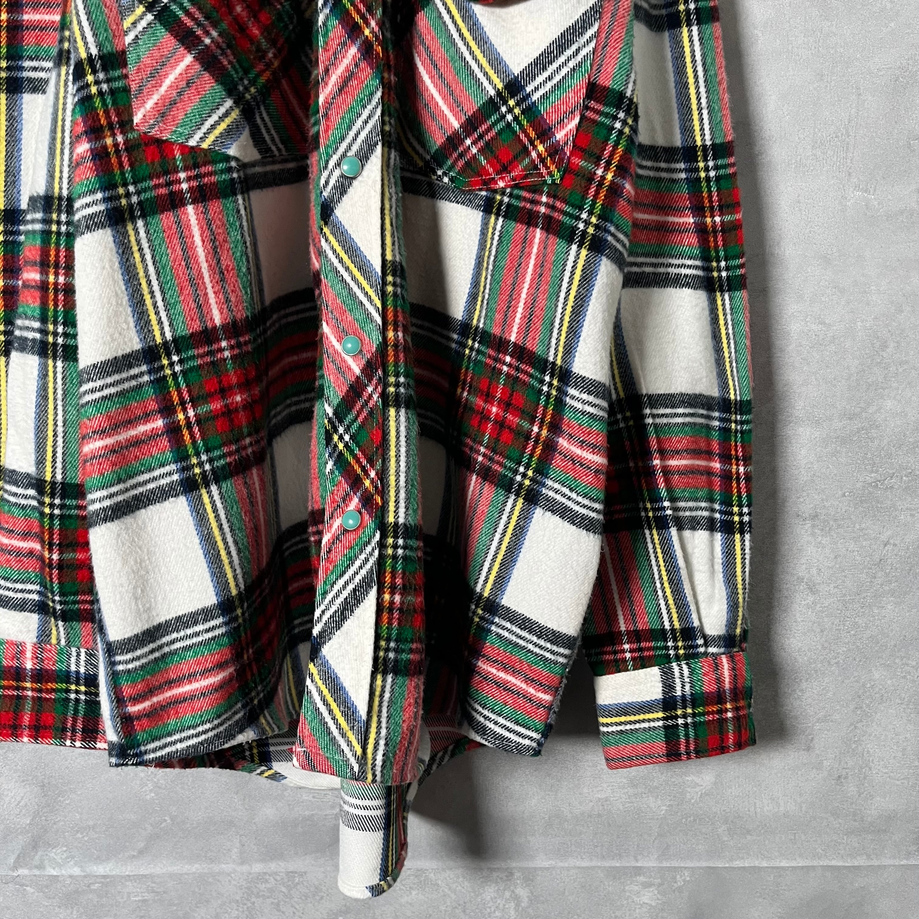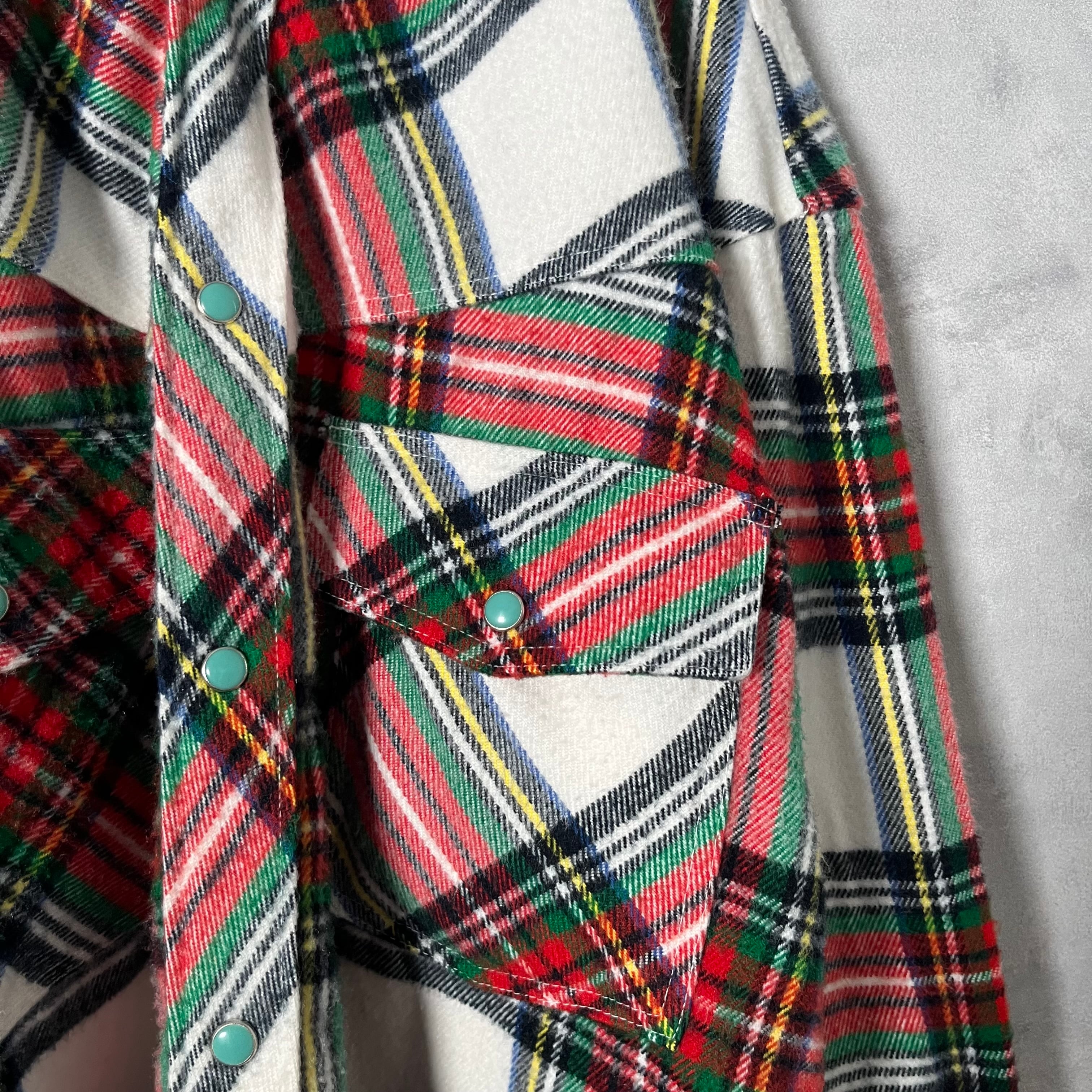 #7087 check pattern flap flannel shirt