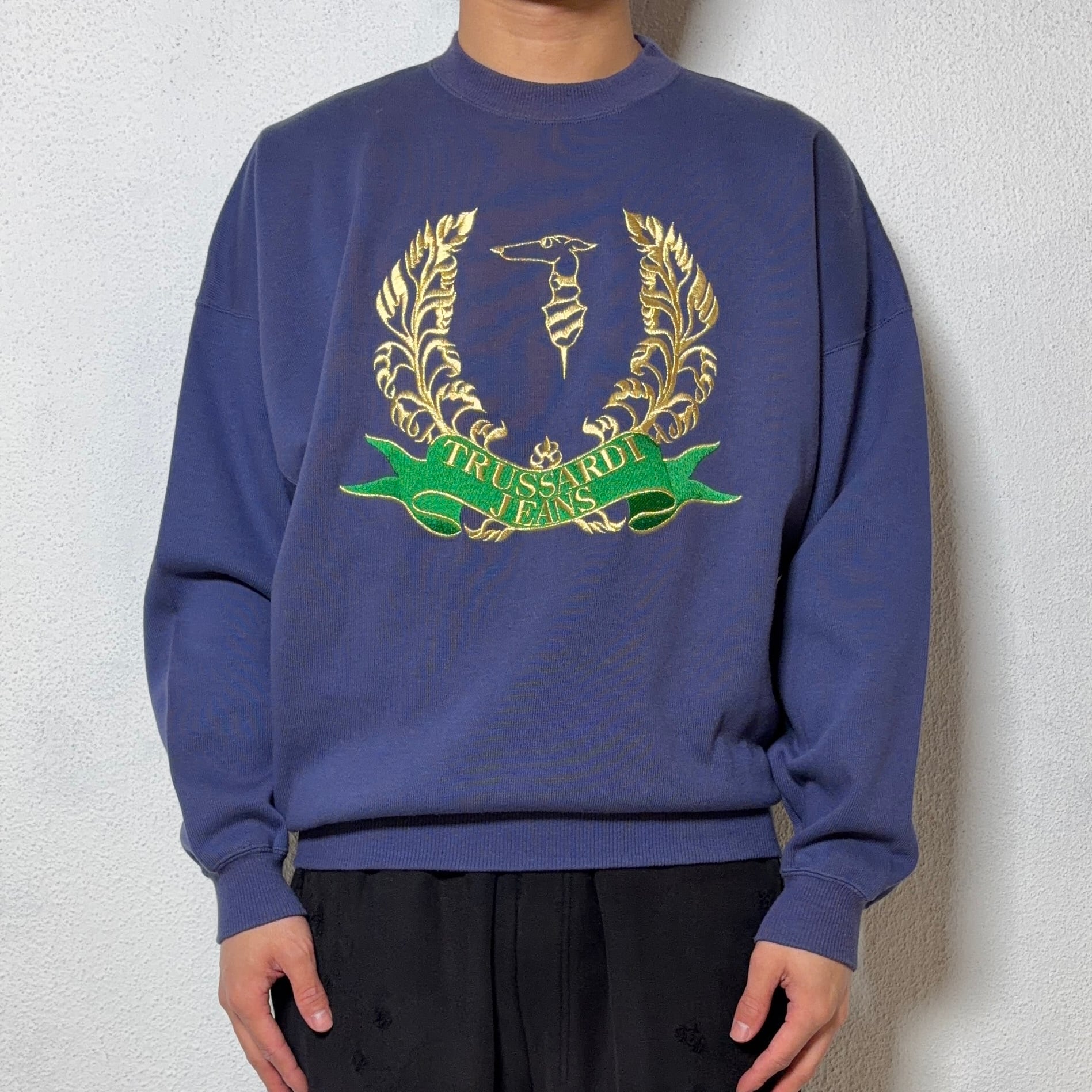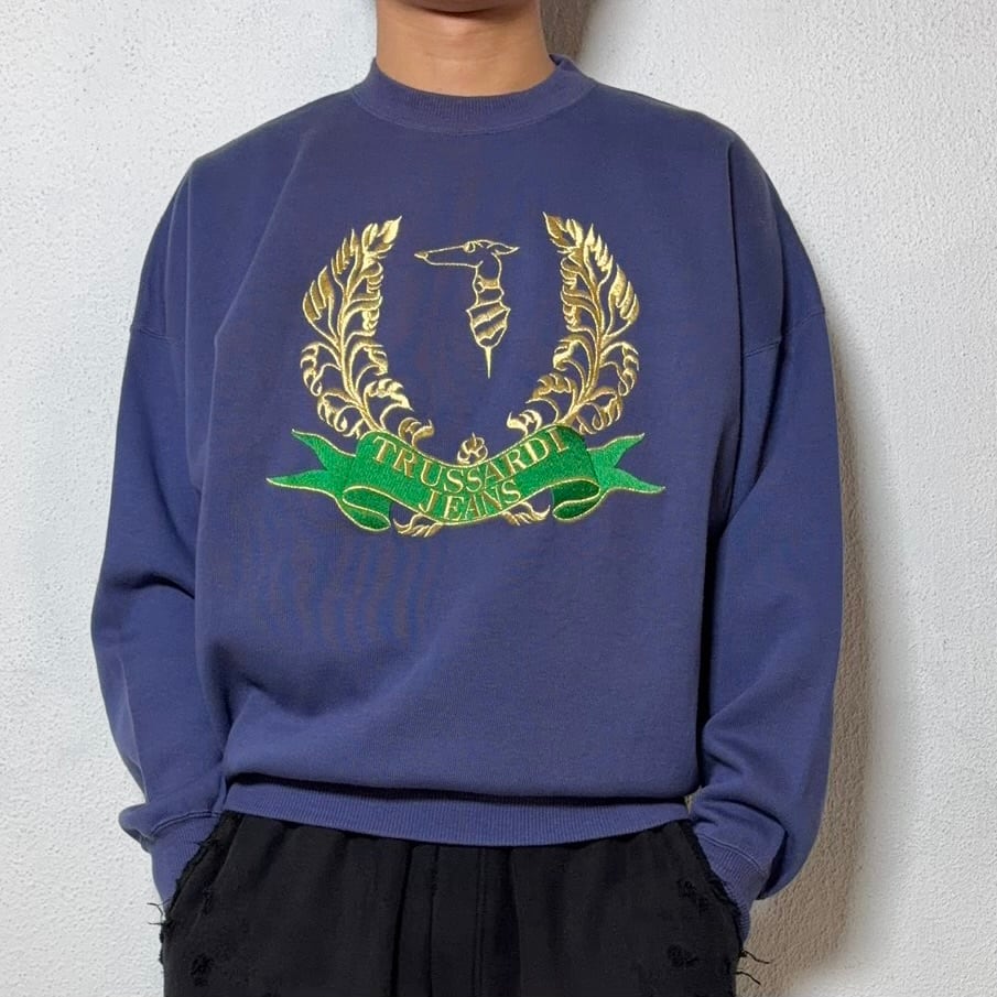 #7130 "TRUSSARDI" logo embroidered cotton sweat
