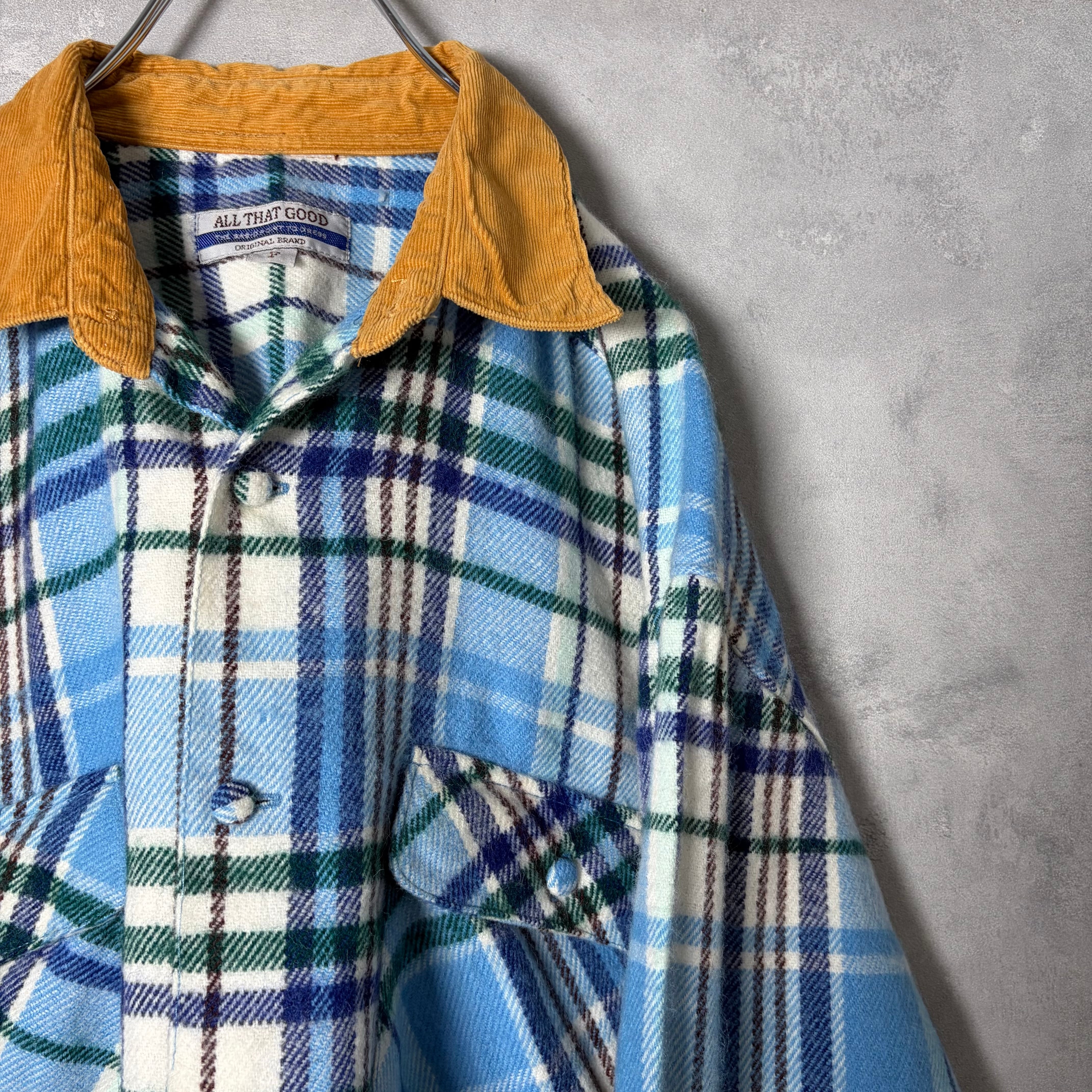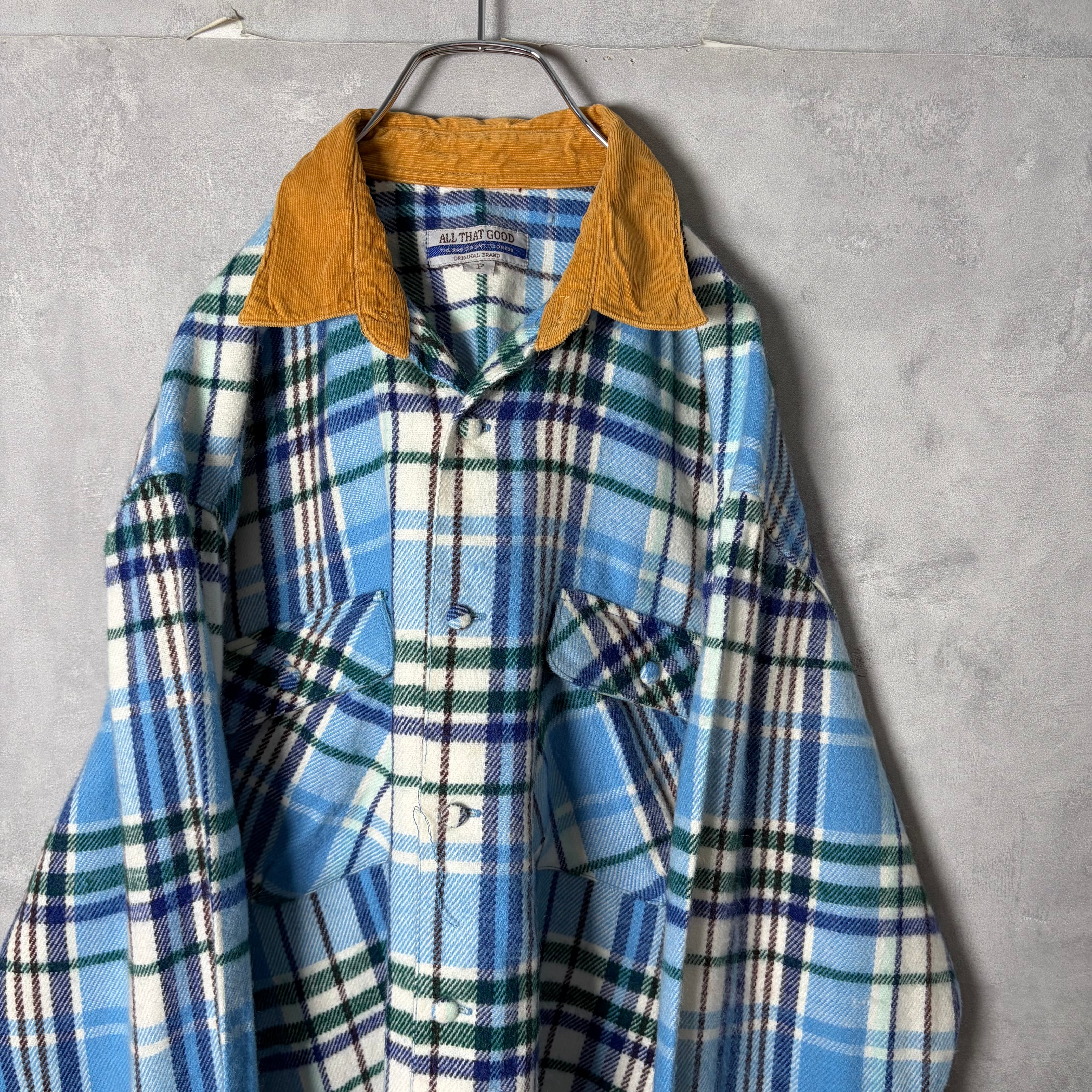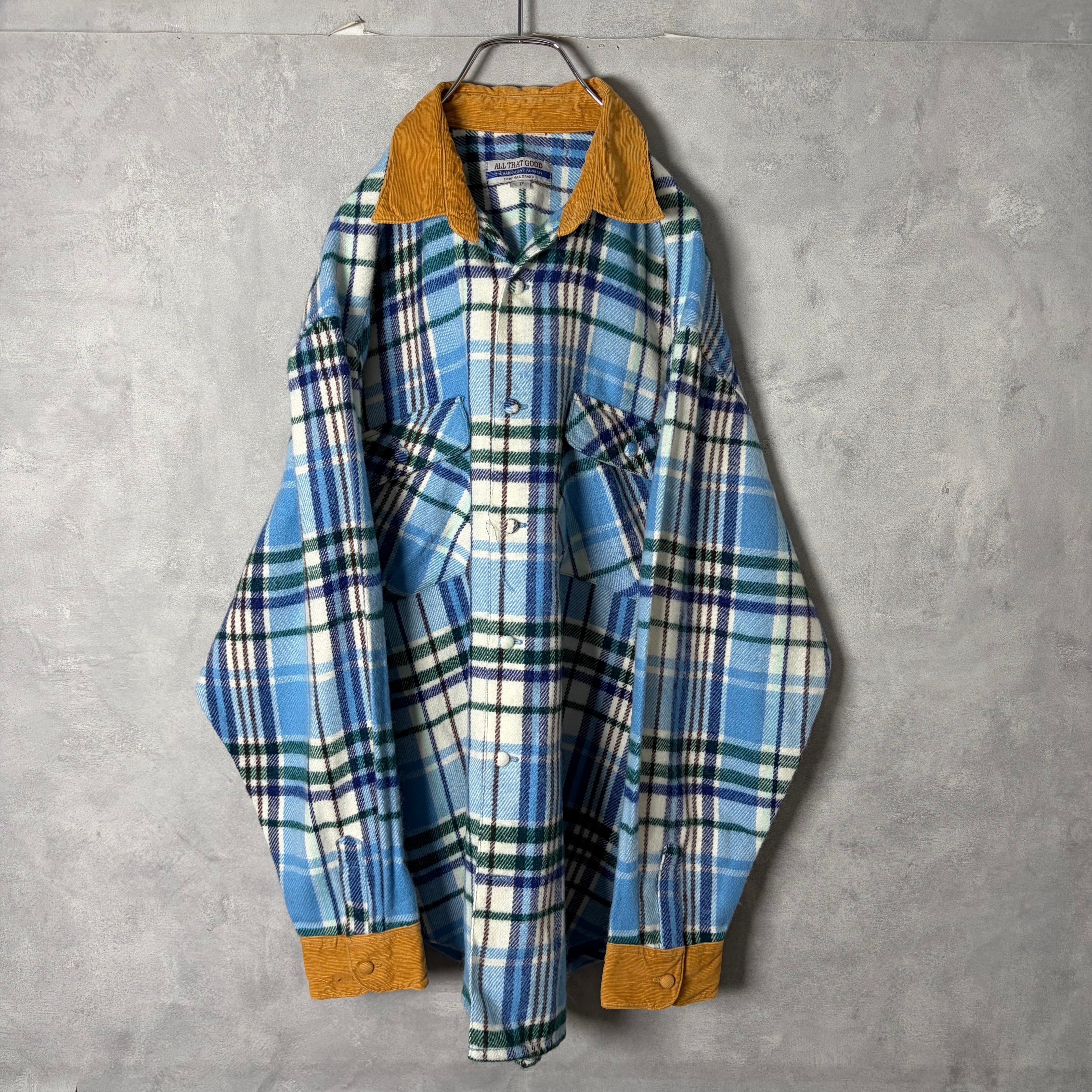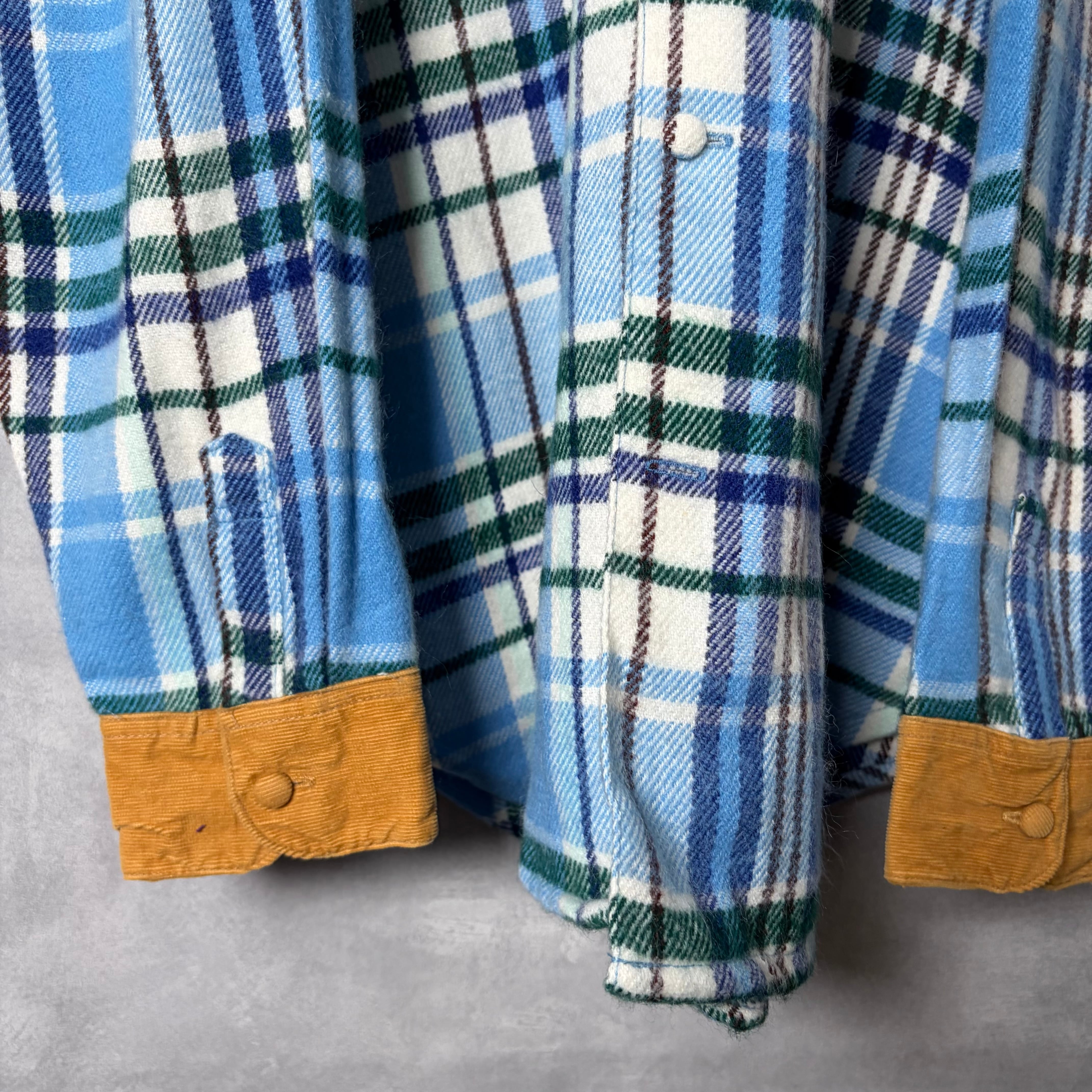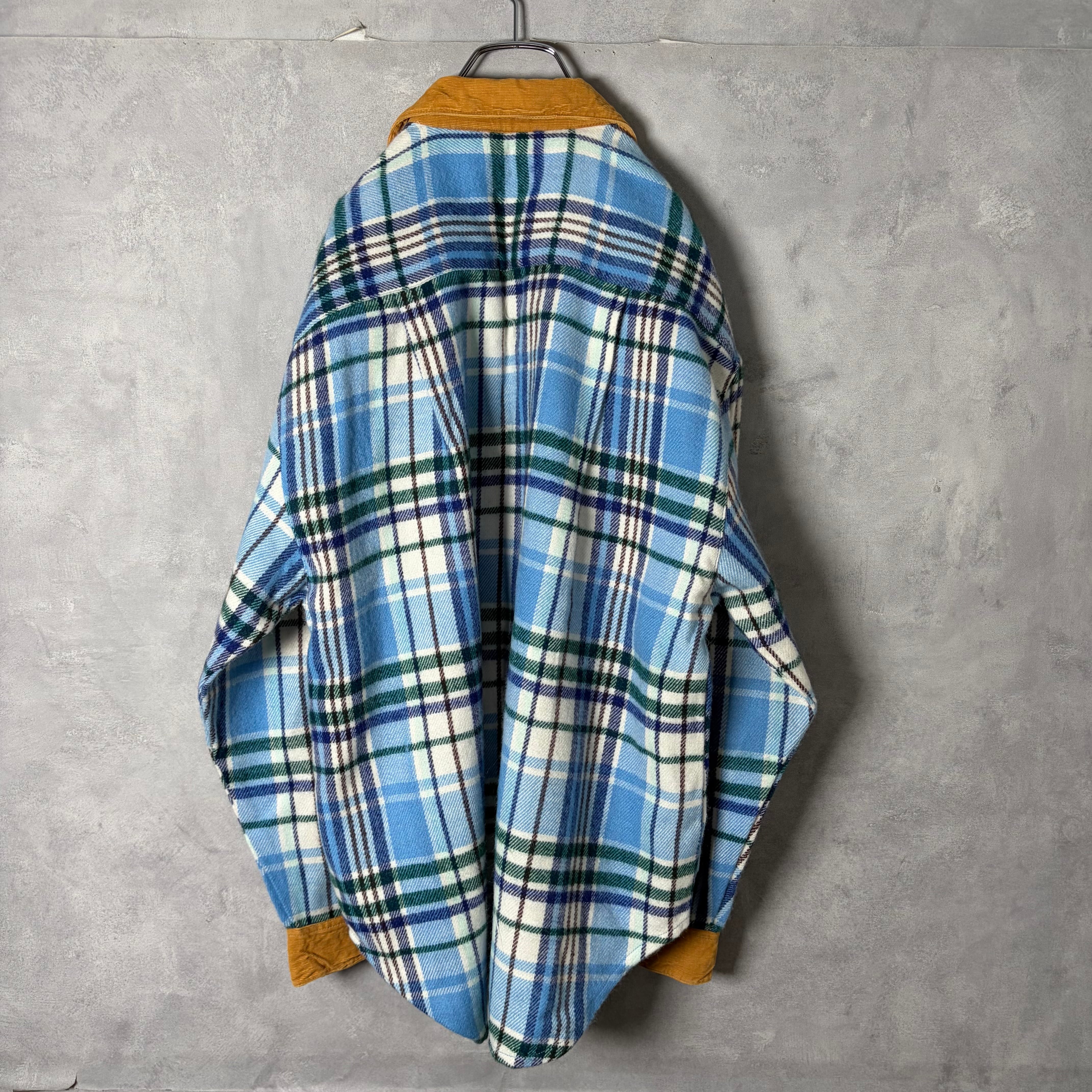 #7169 corduroy switch tartan check pattern flap flannel shirt