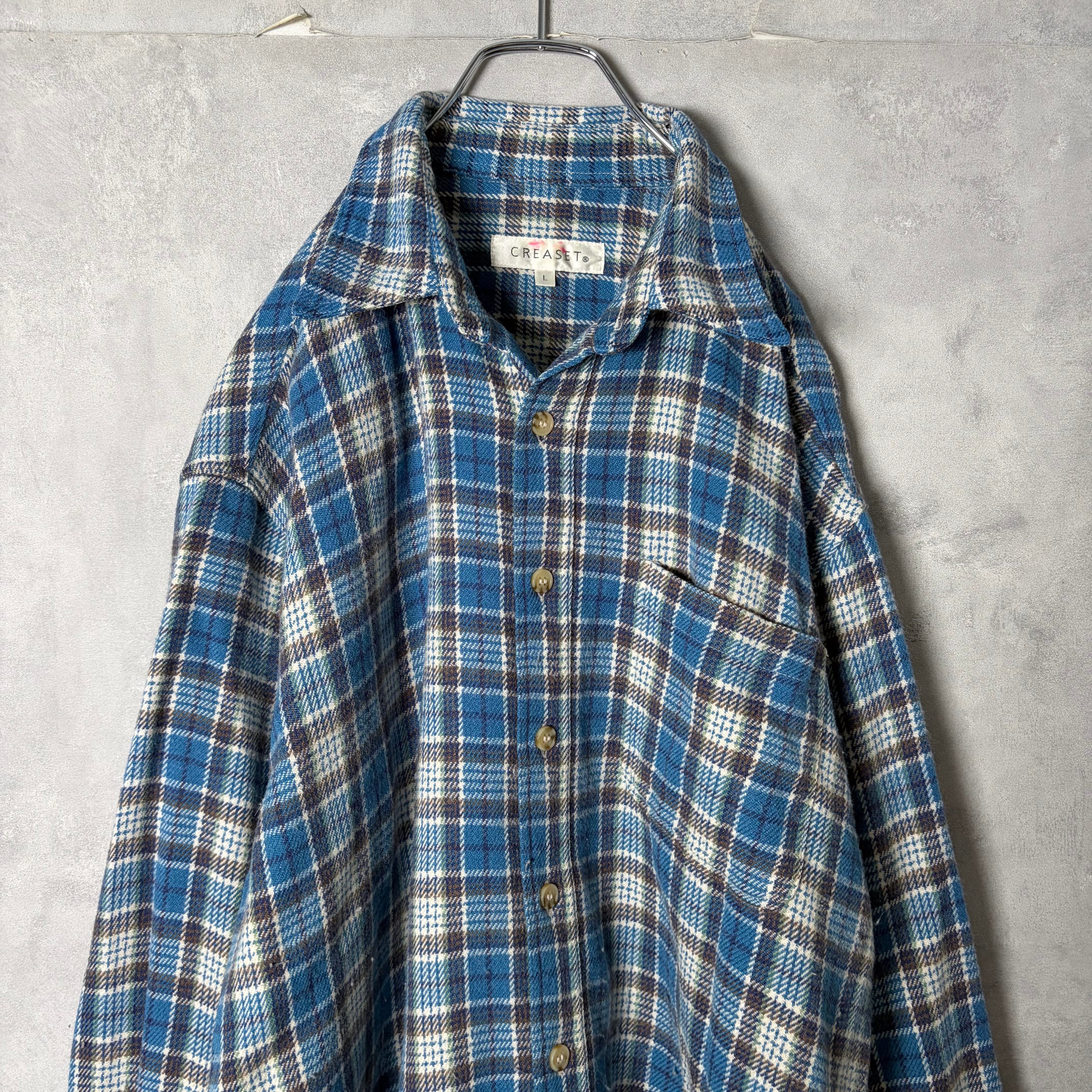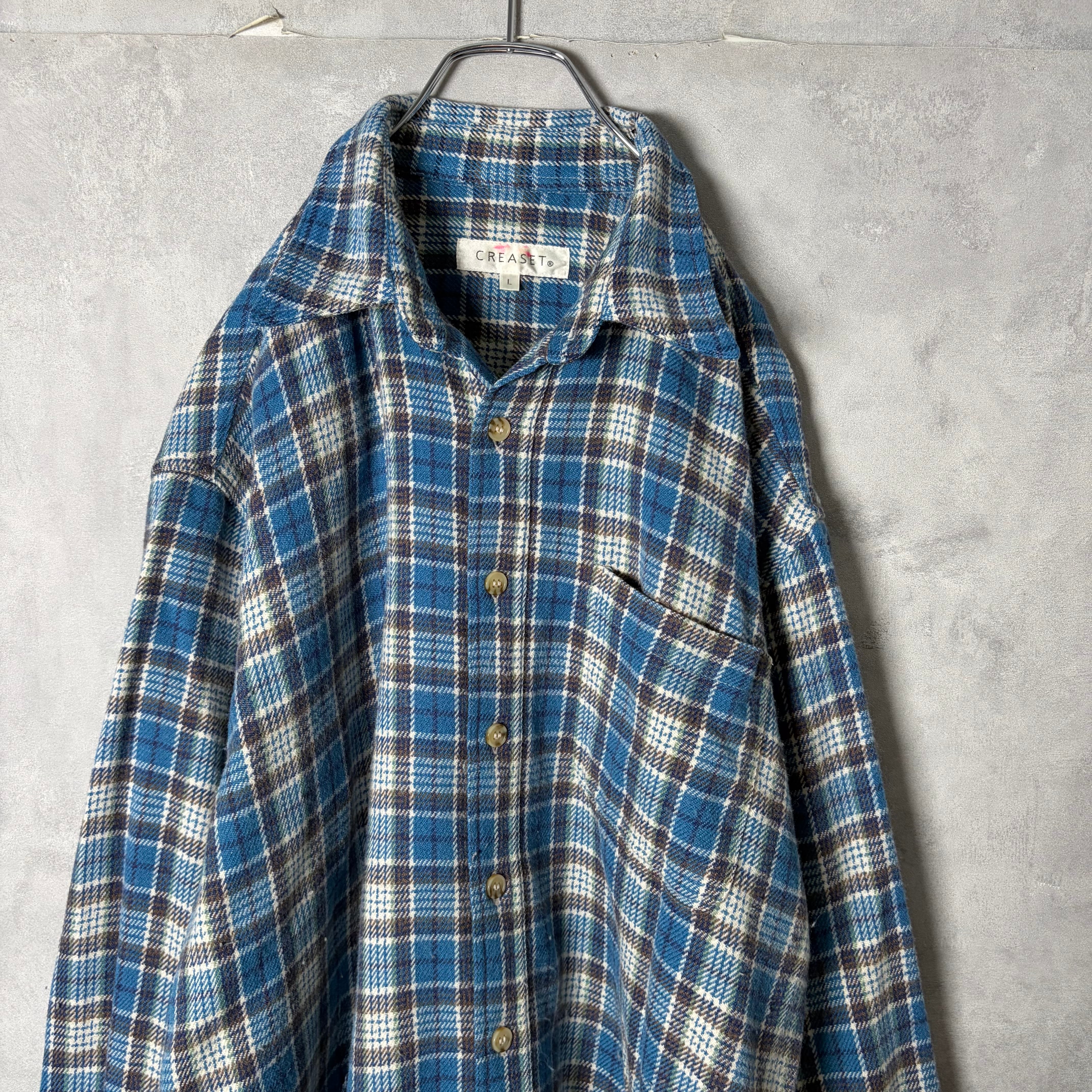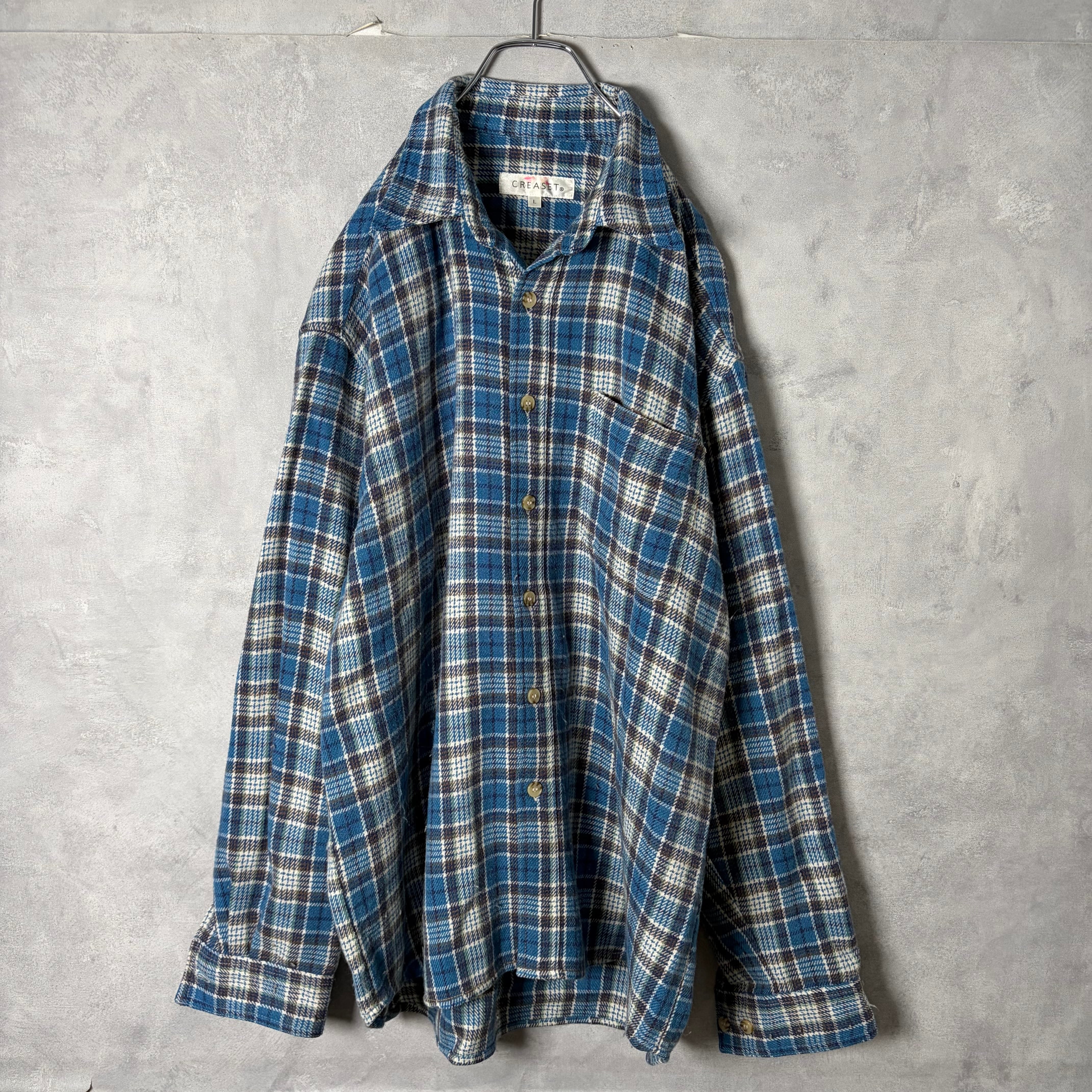 #7172 tartan blue check pattern flannel shirt