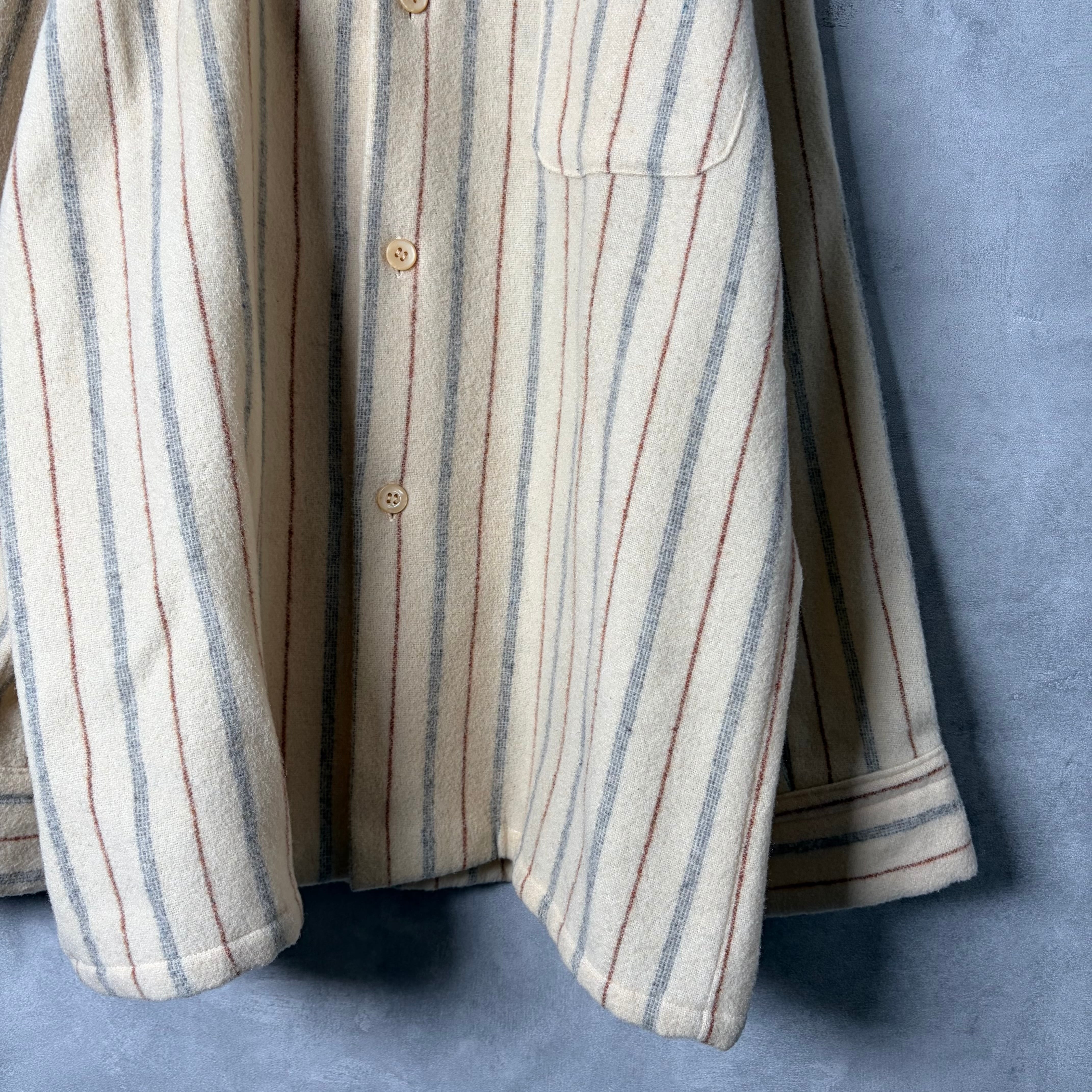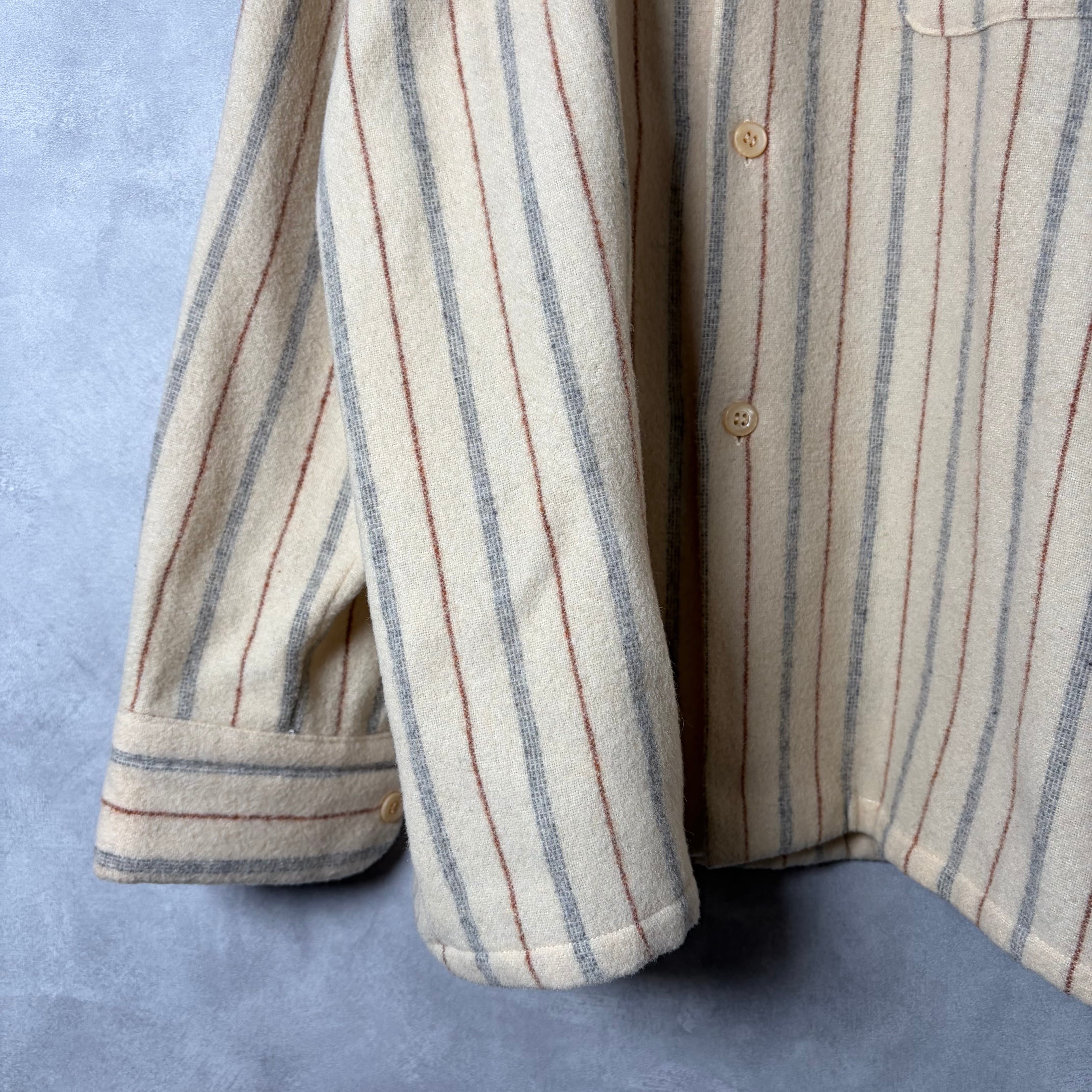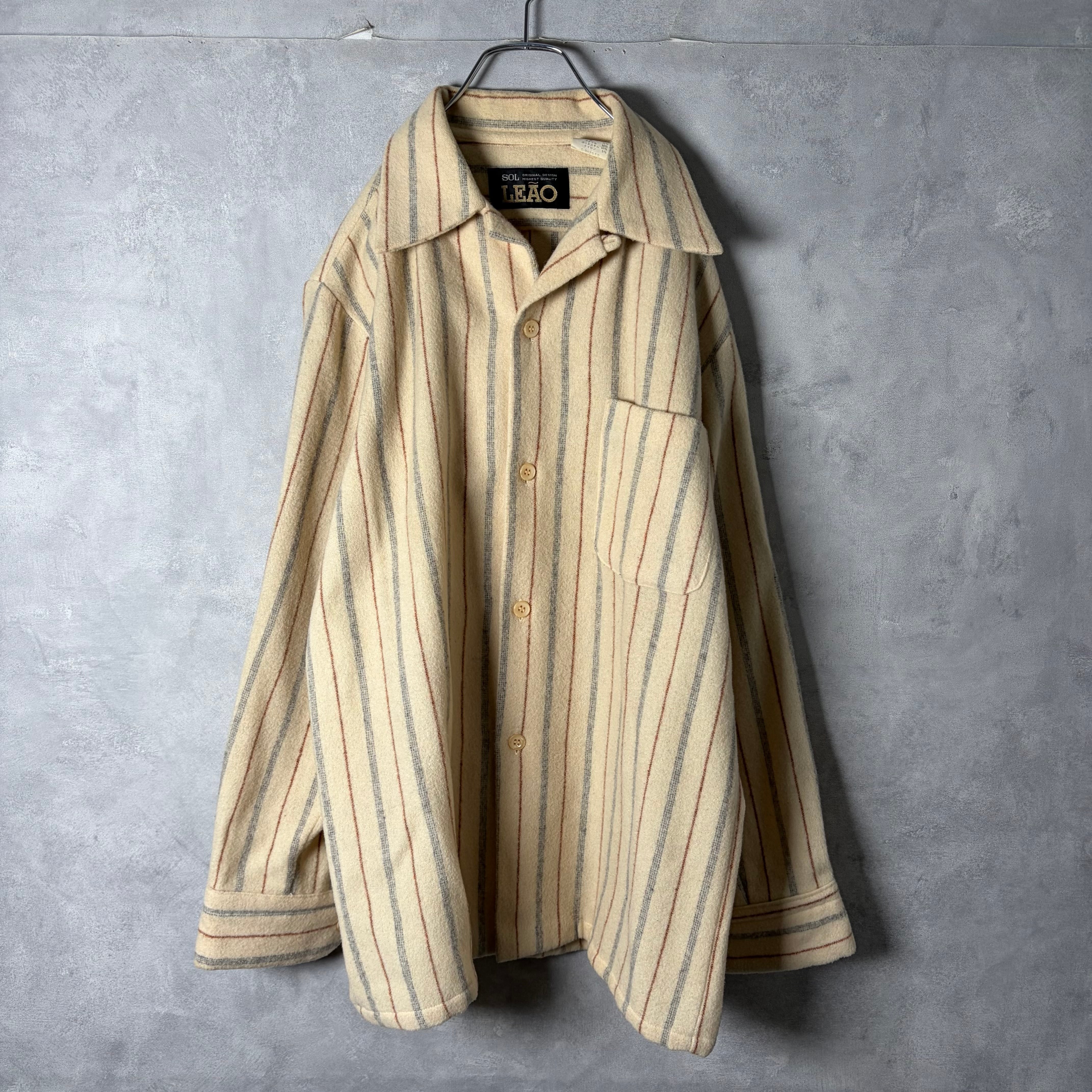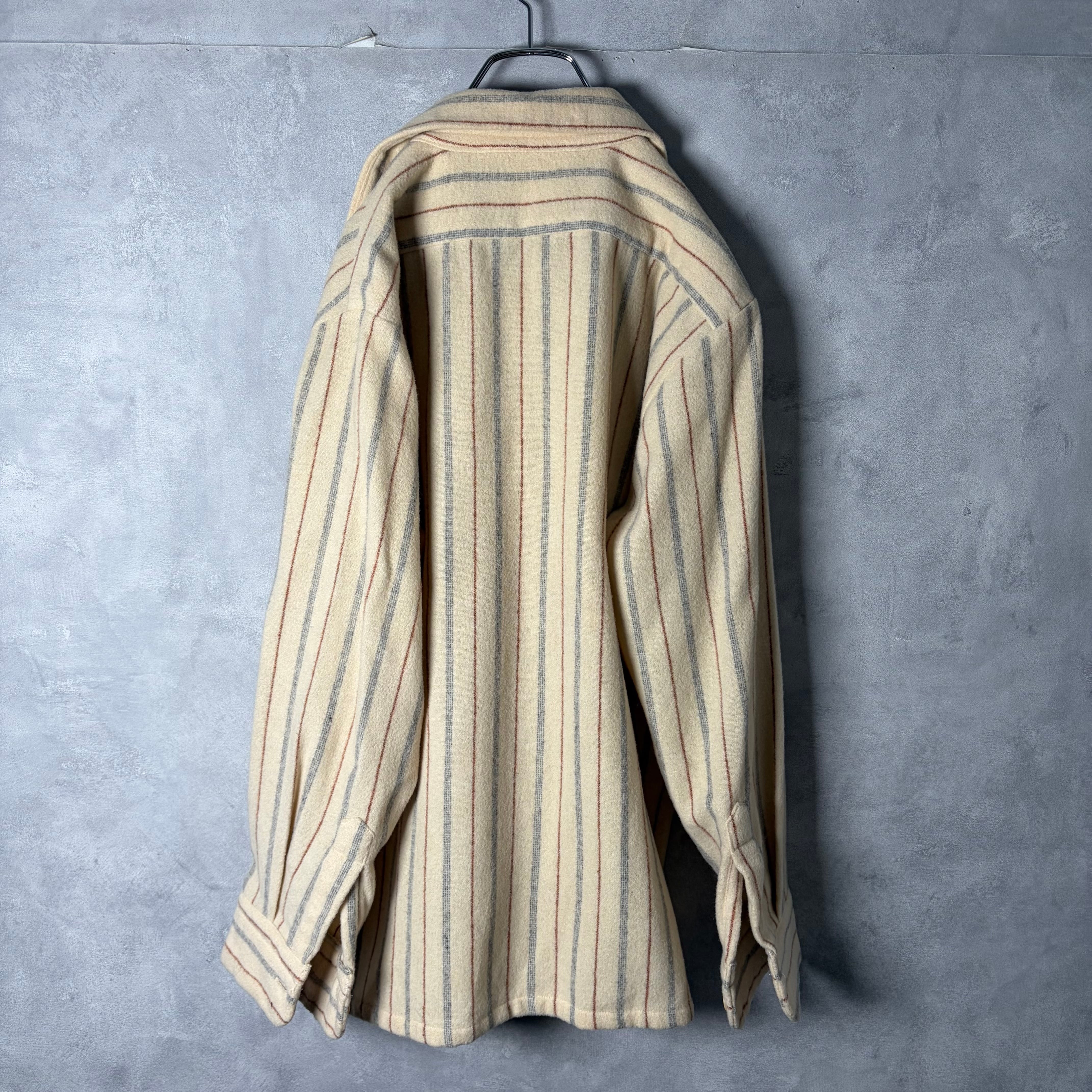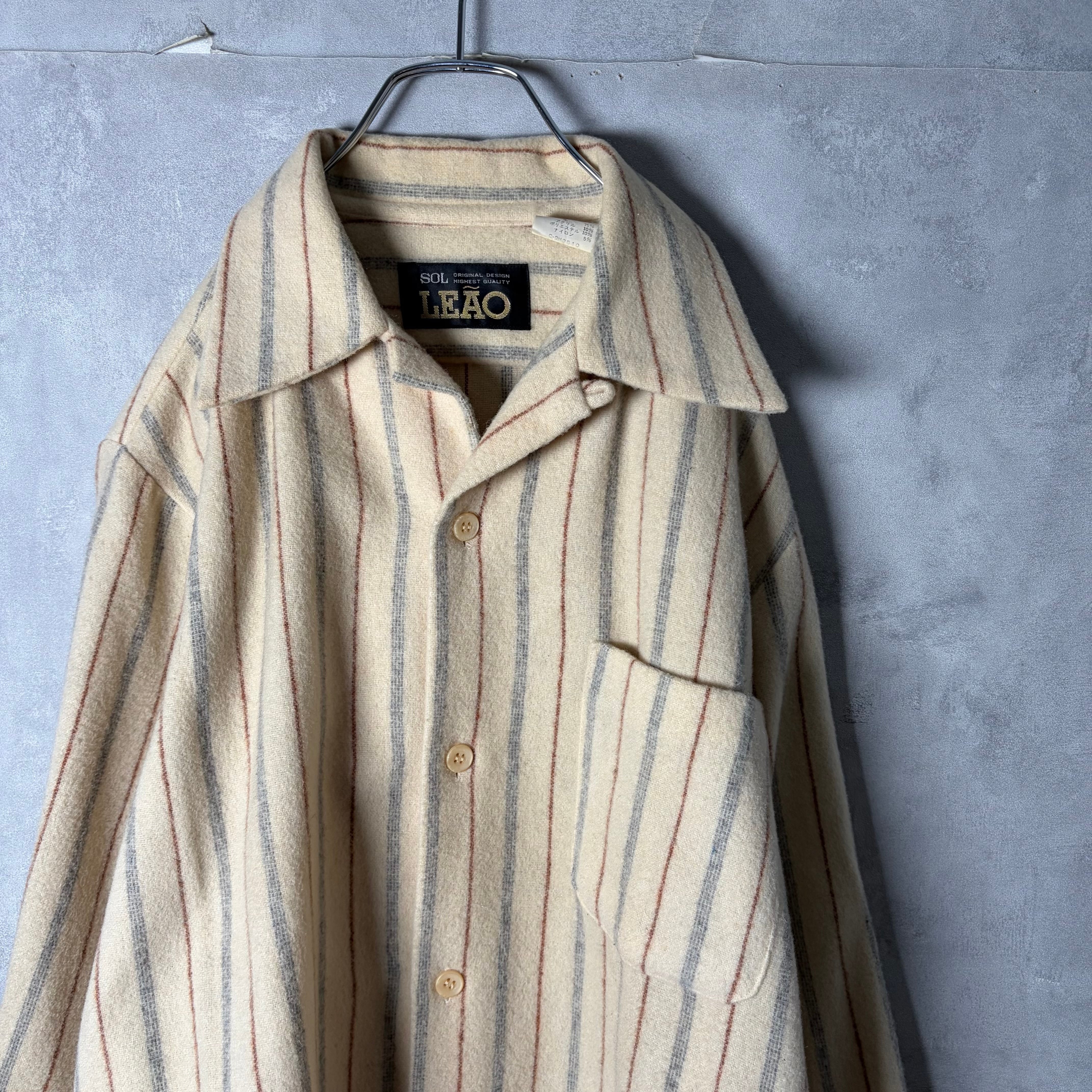 #7210 stripe pattern wool open collar board shirt