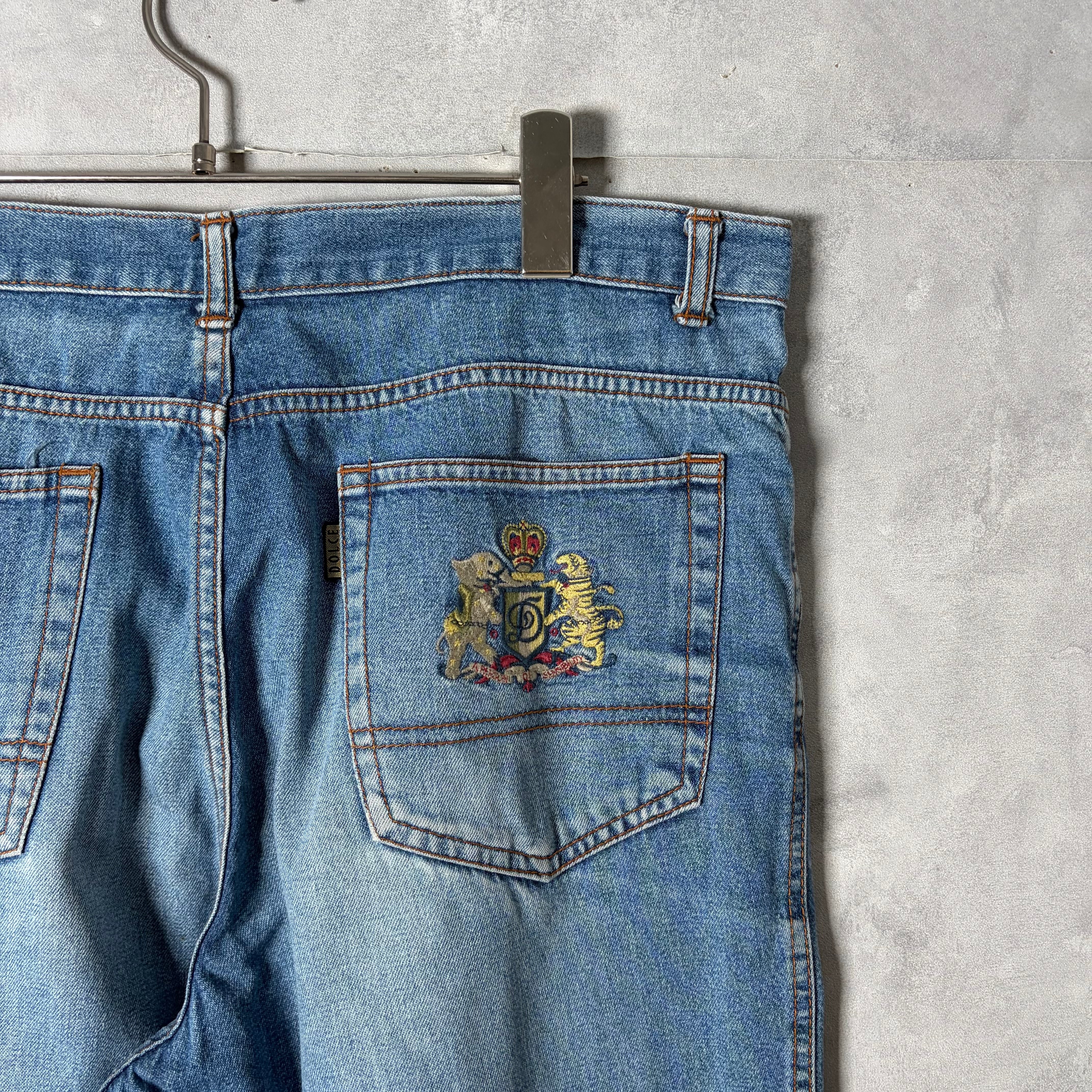 #7218 "DOLCE" embroidery design wide denim pants
