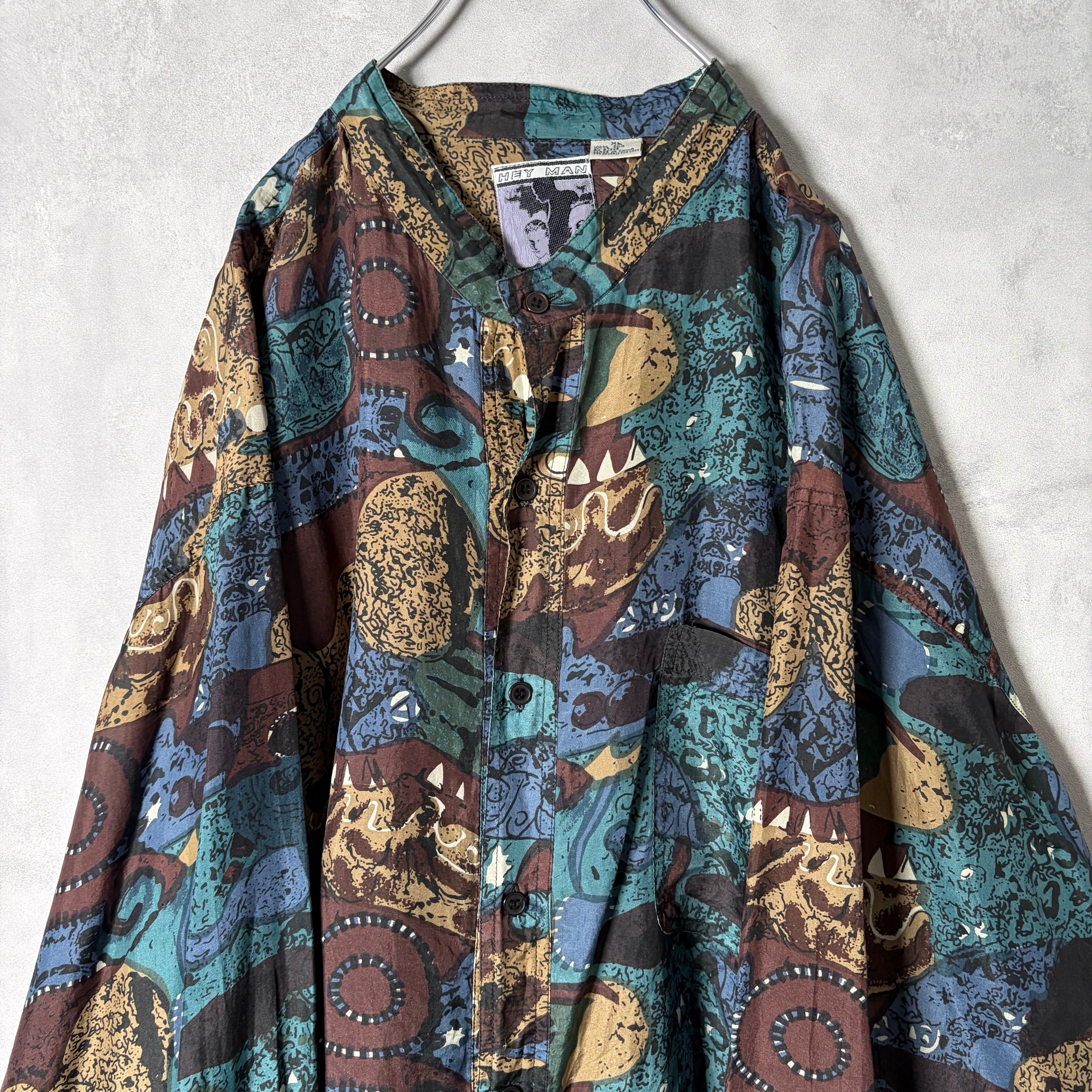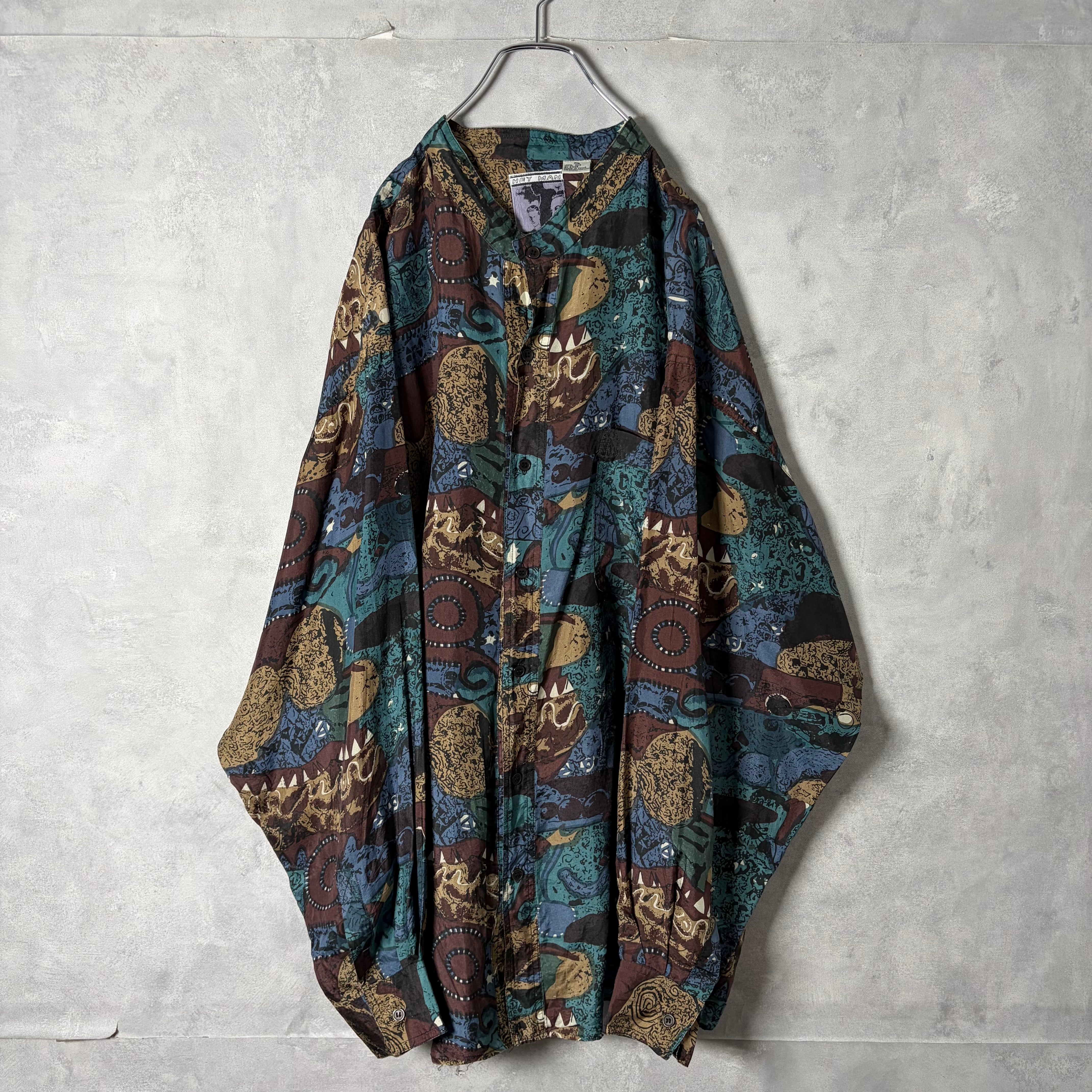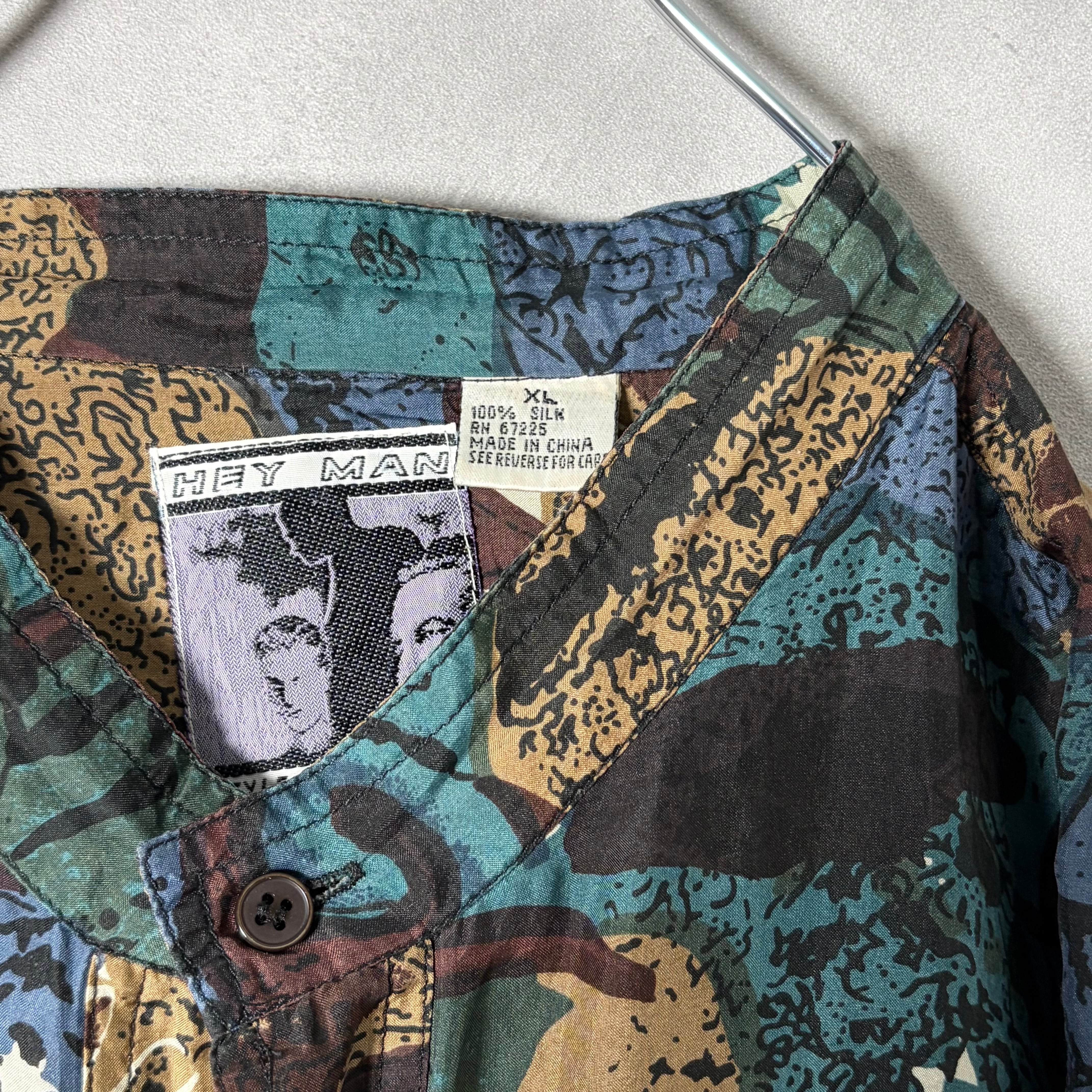 #7222 "HEY MAN" geometric pattern standcollar silk shirt