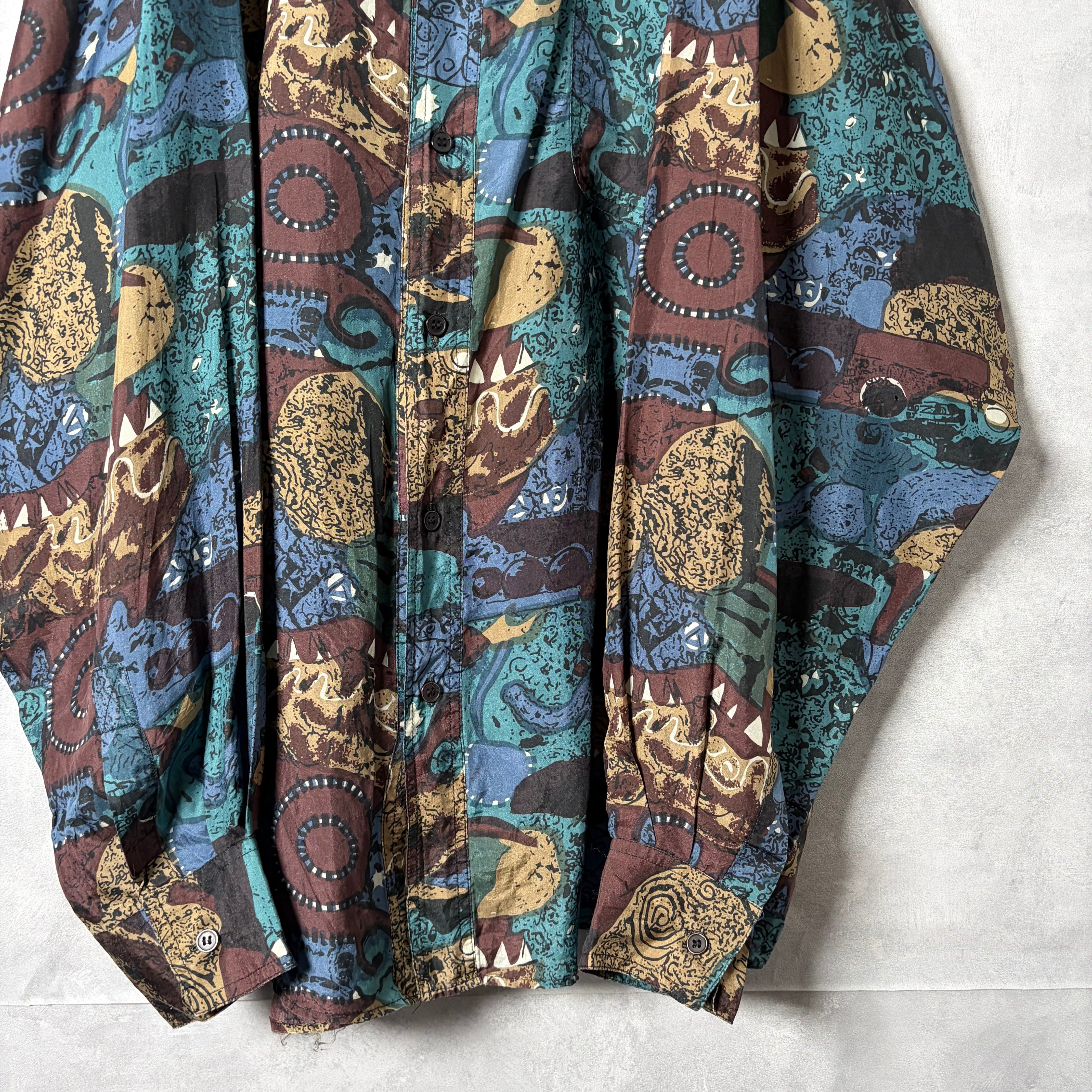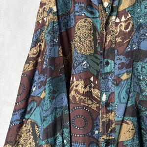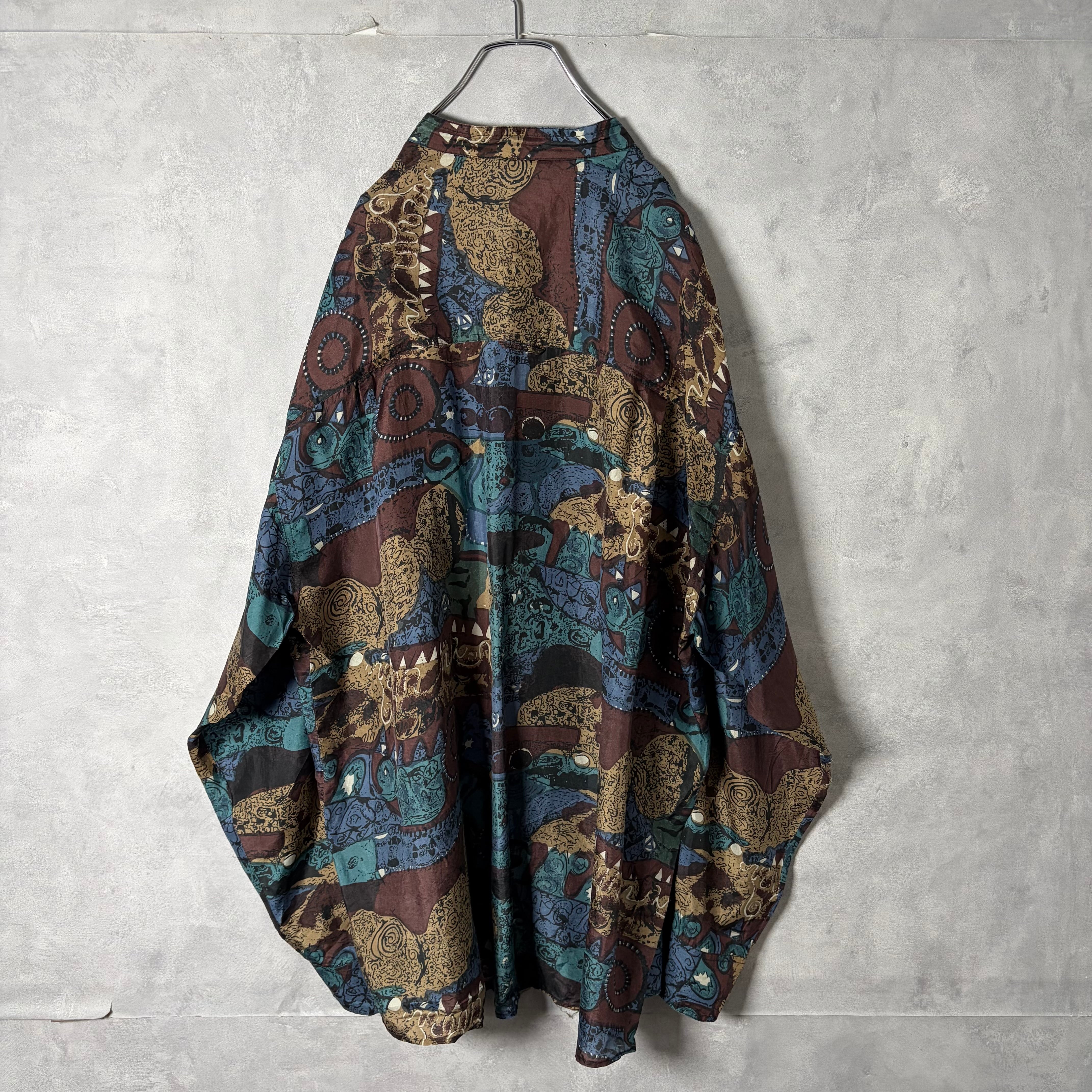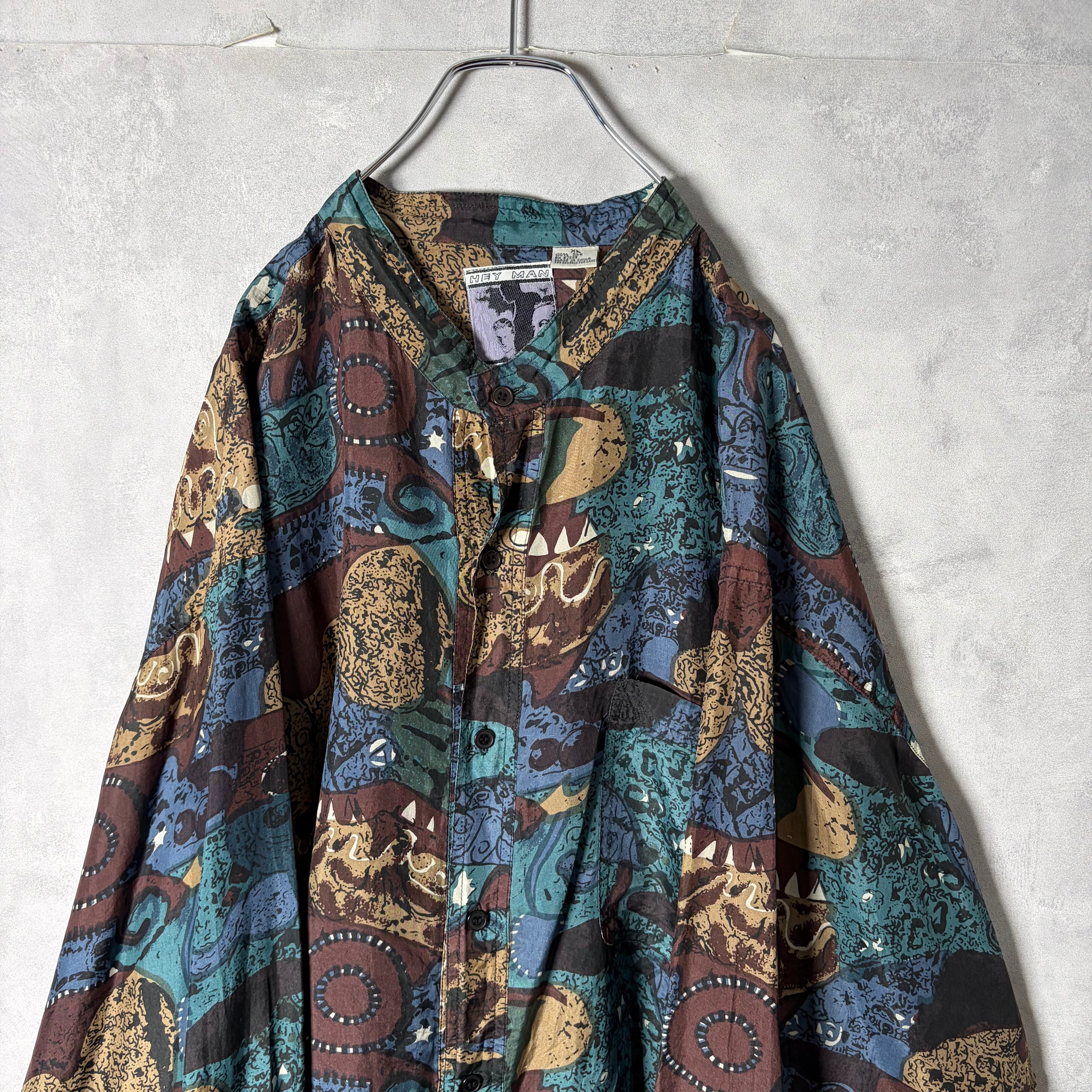 #7222 "HEY MAN" geometric pattern standcollar silk shirt