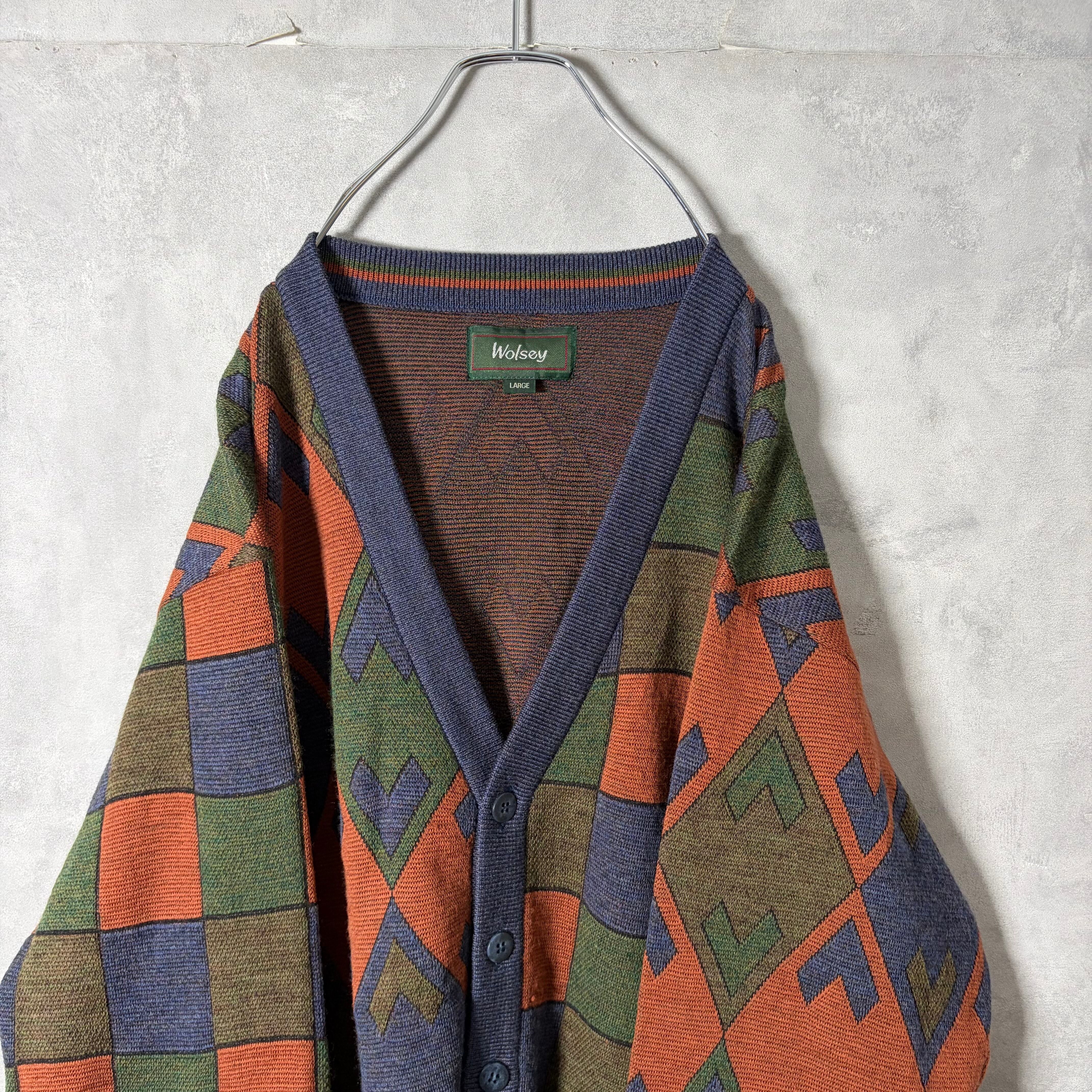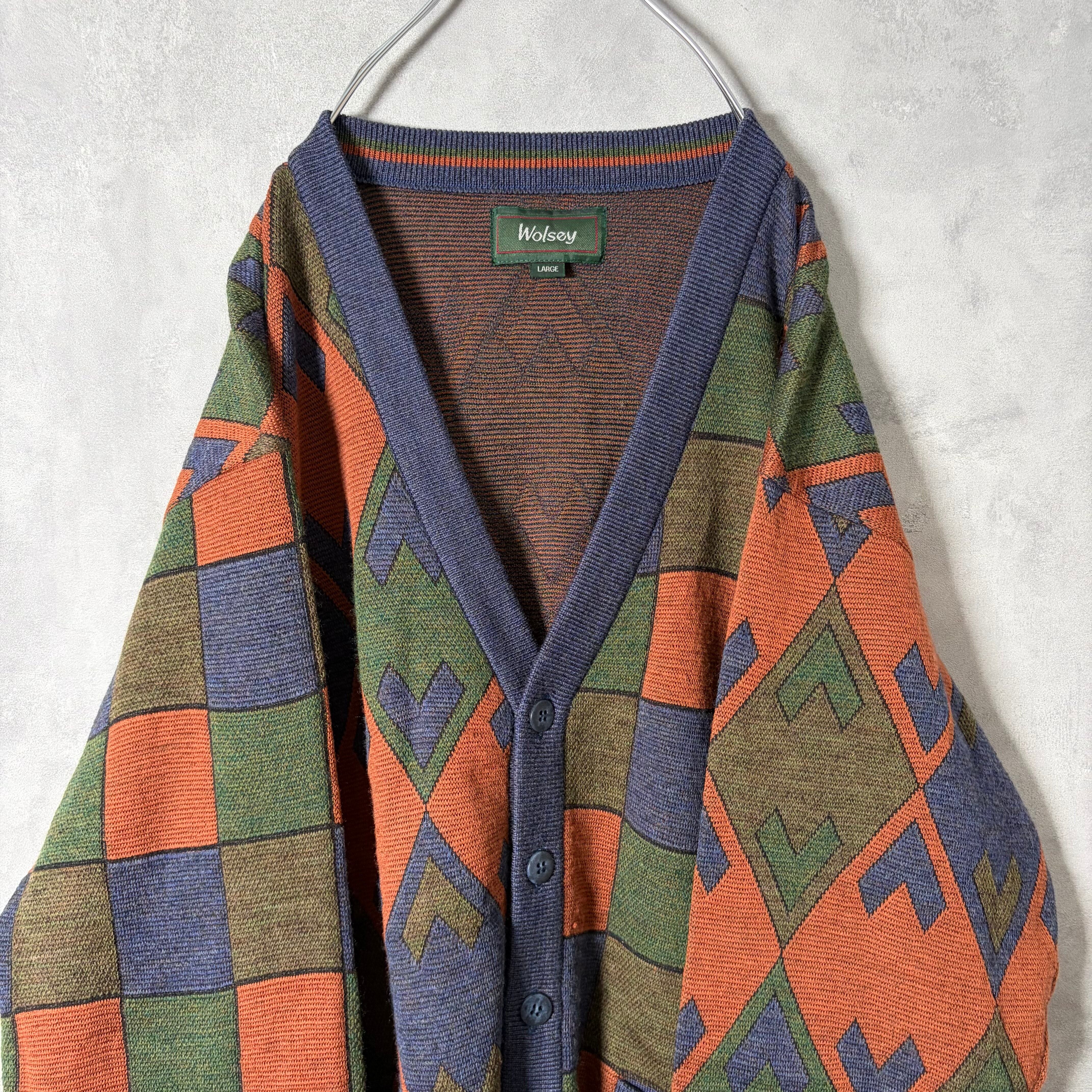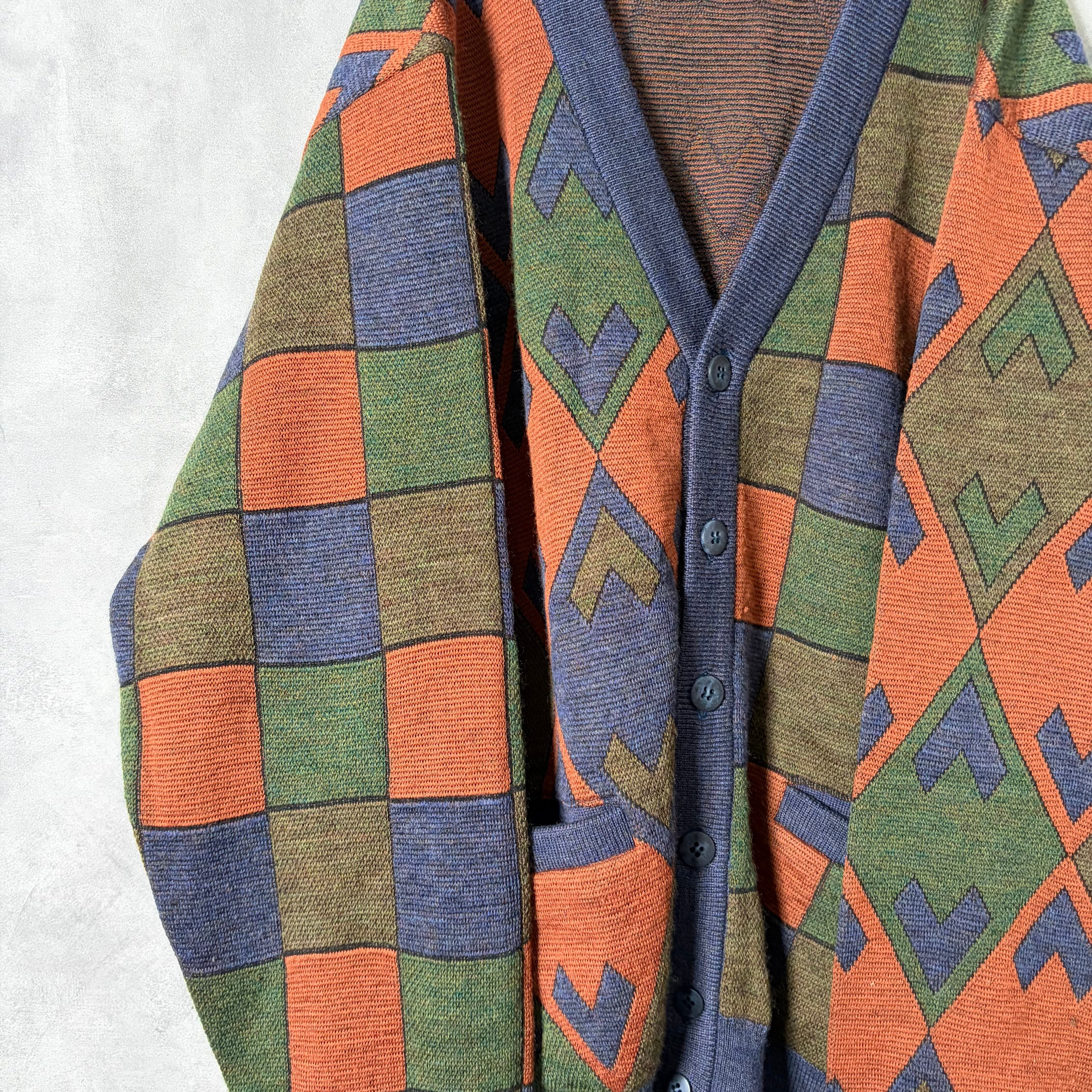 #7242 "Wolsey" geometric pattern wool cardigan