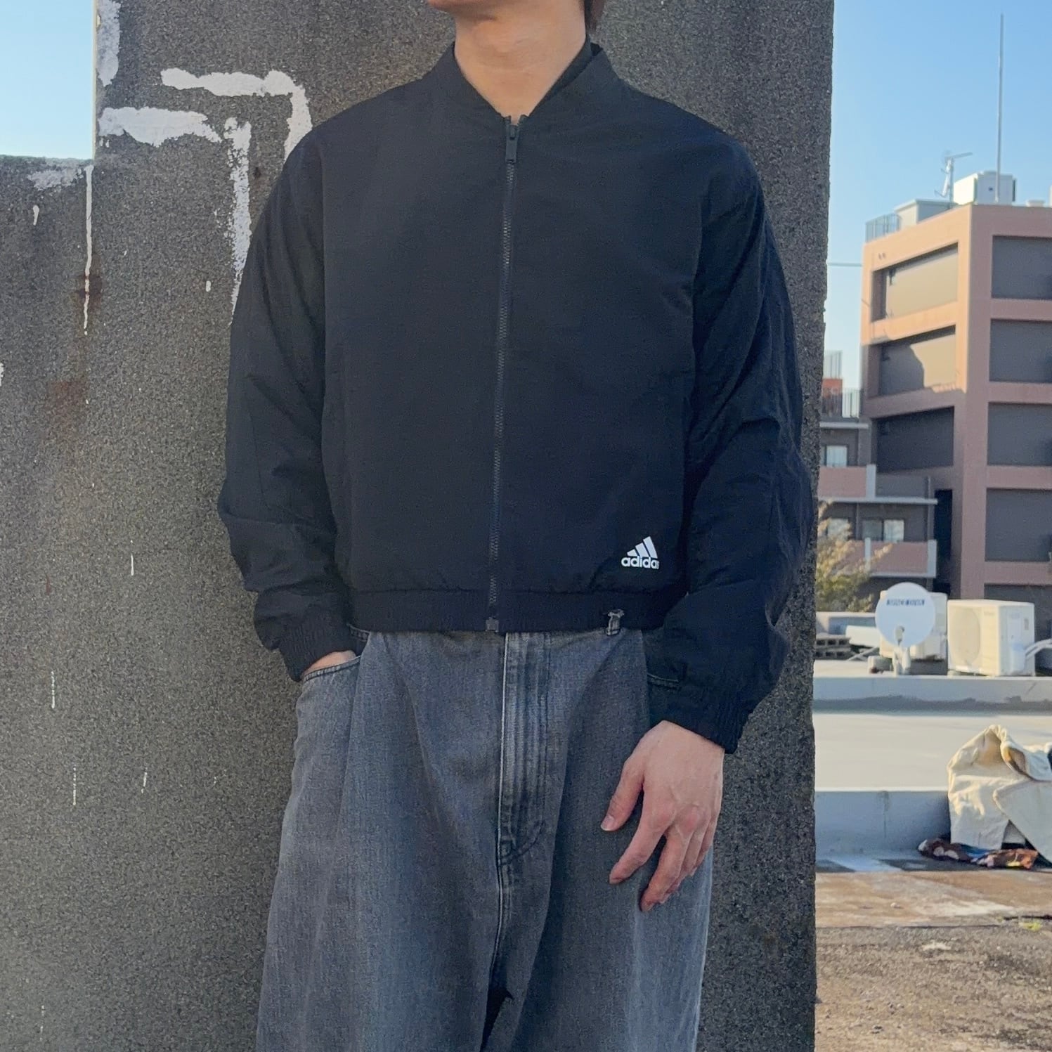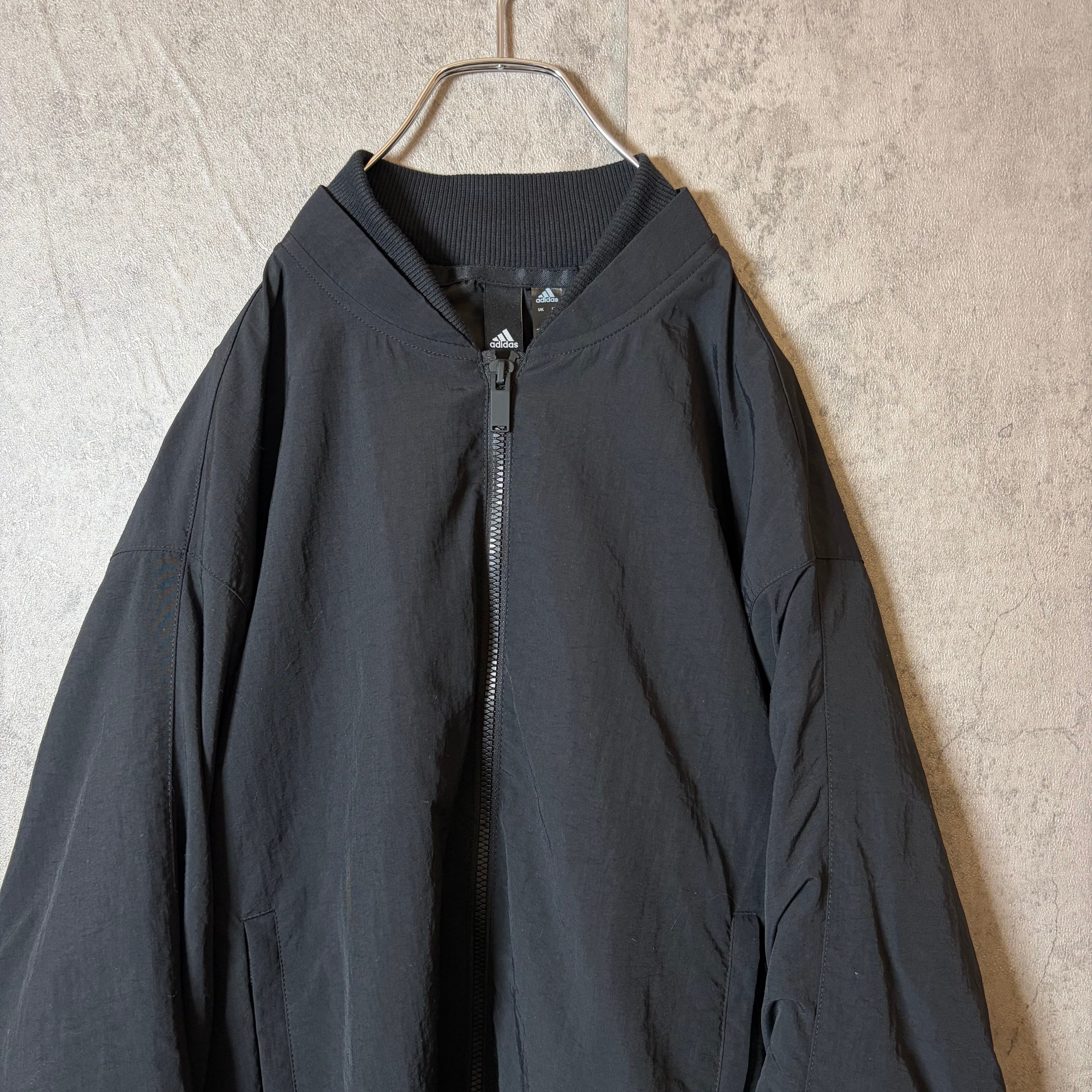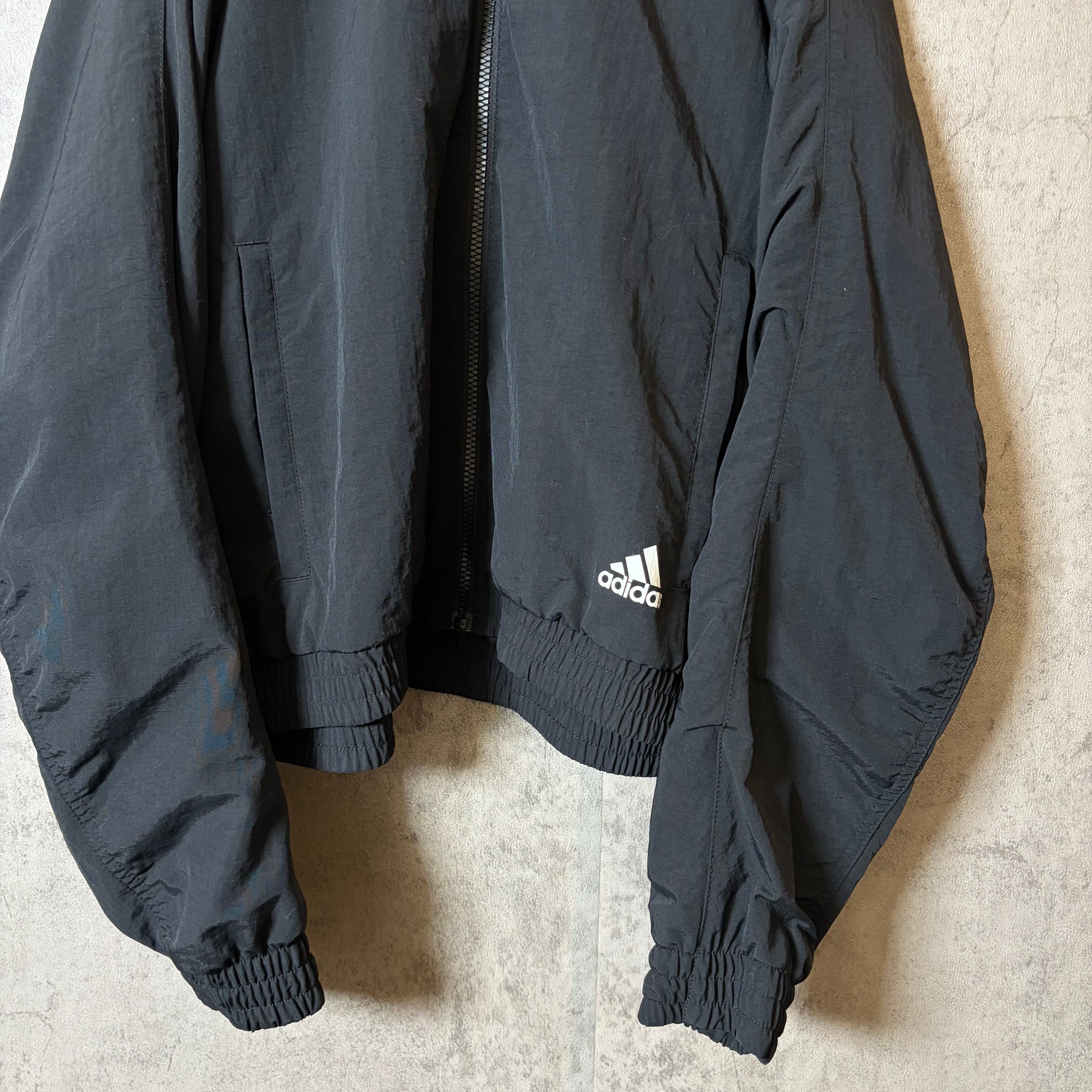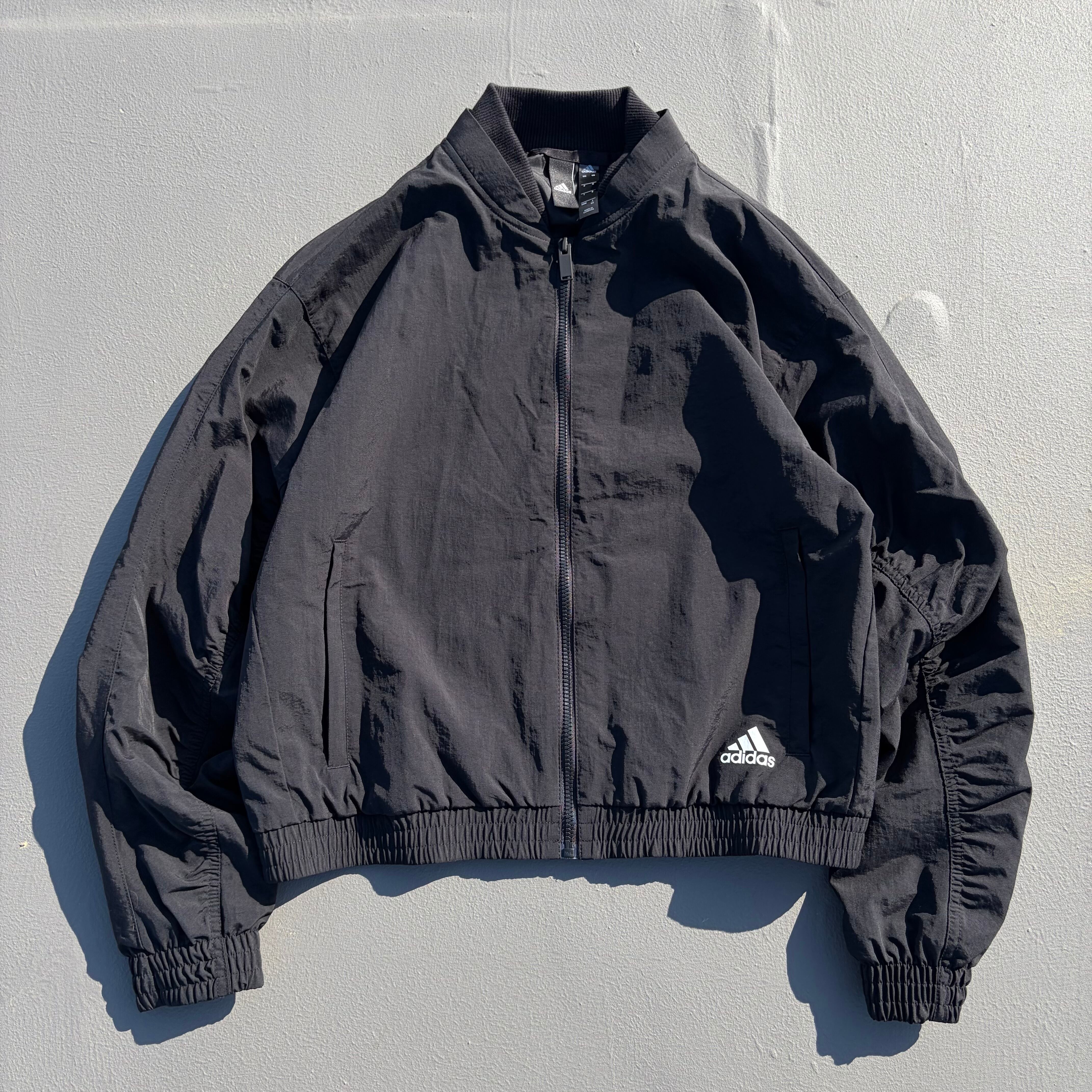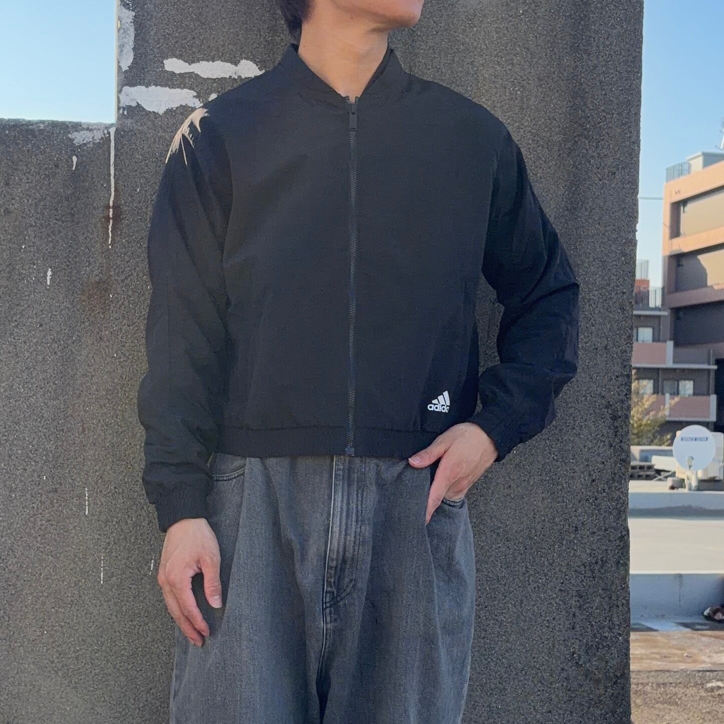 #7325 "adidas" logo print black short nylon blouson