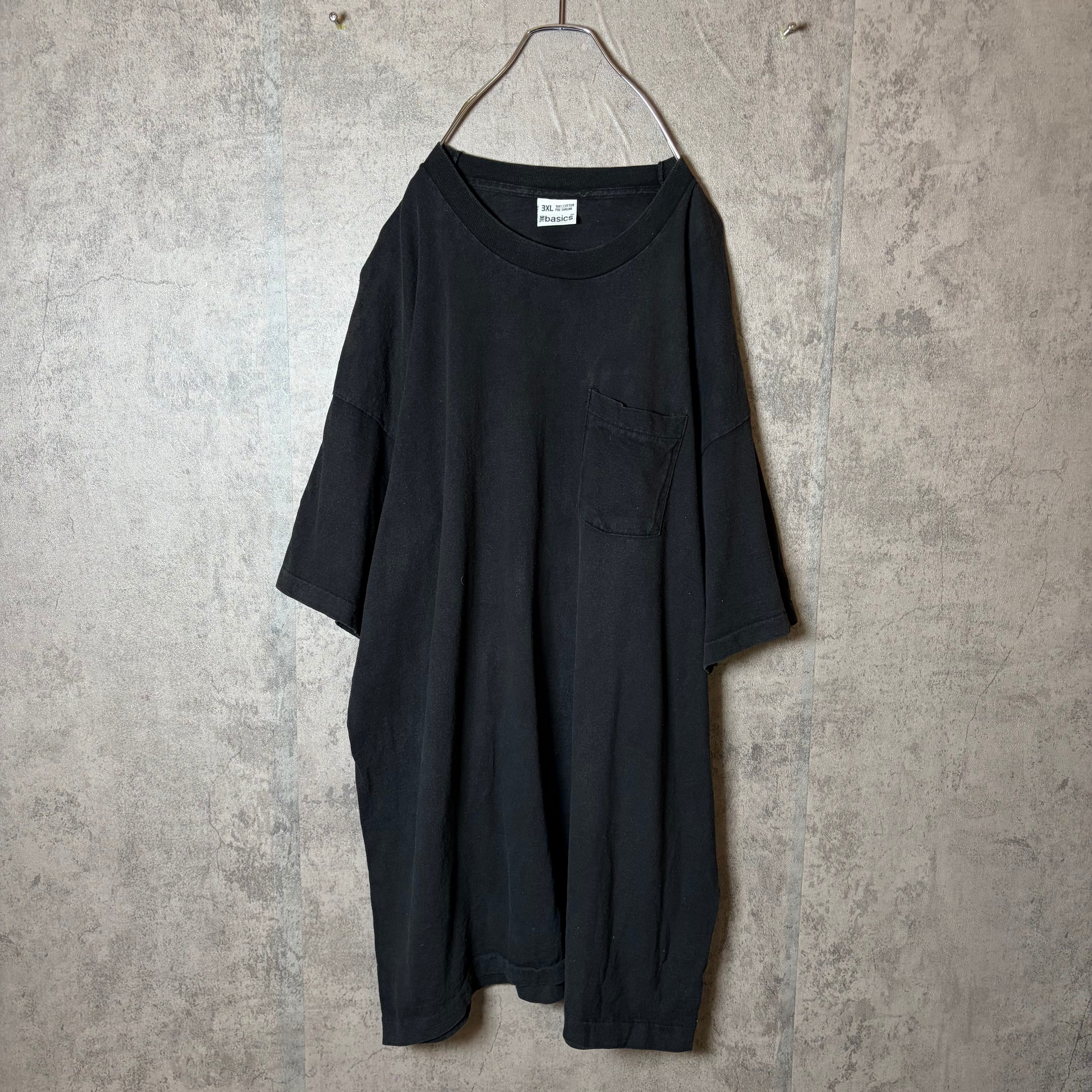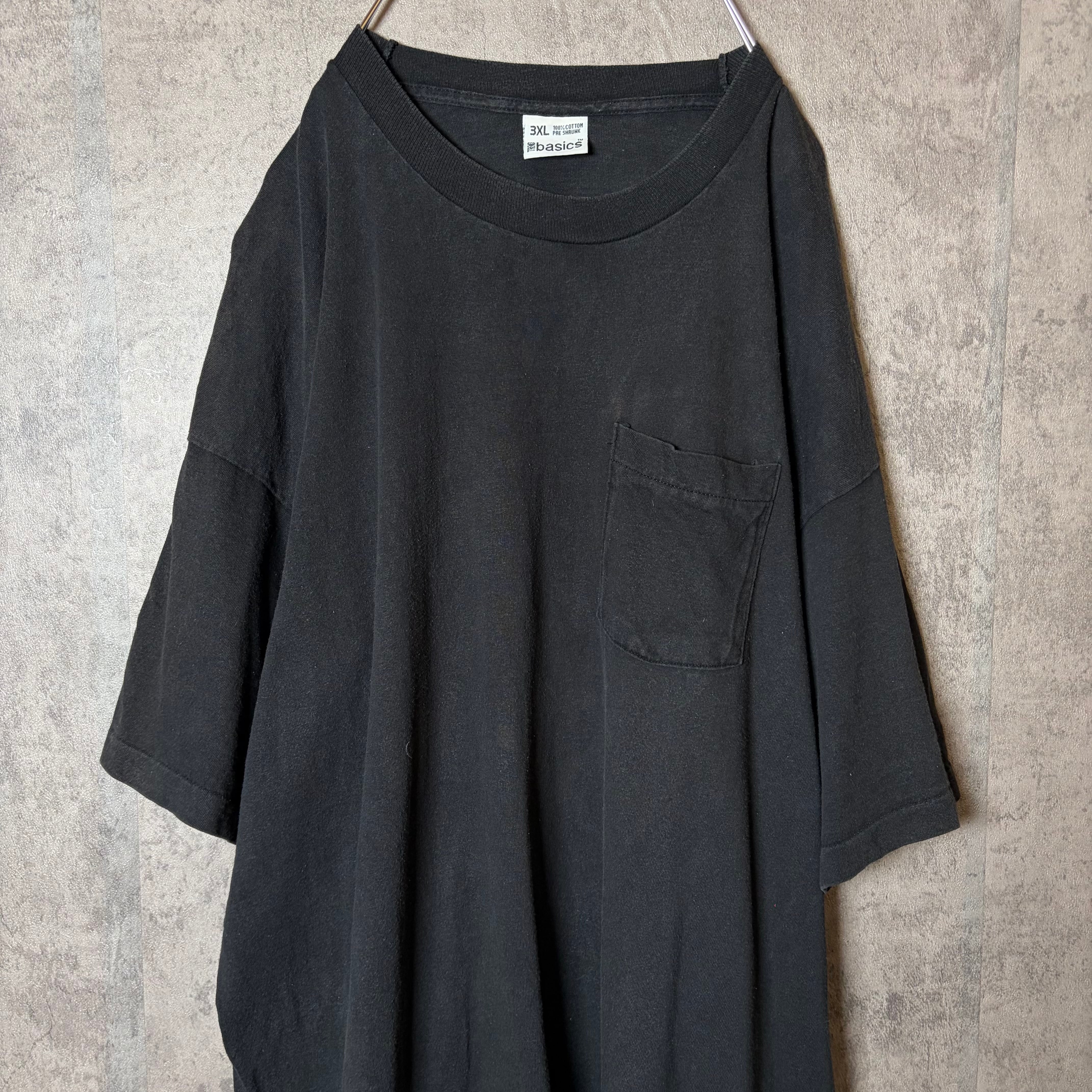 #7339 big size 3XL black color pocket cotton T-shirt