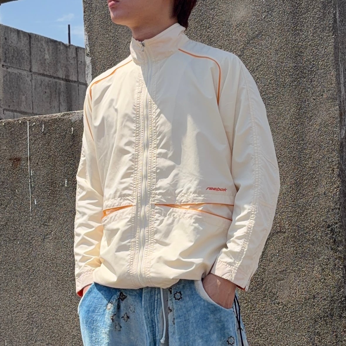 #7357 00s "Reebok" logo embroidery piping tech jacket