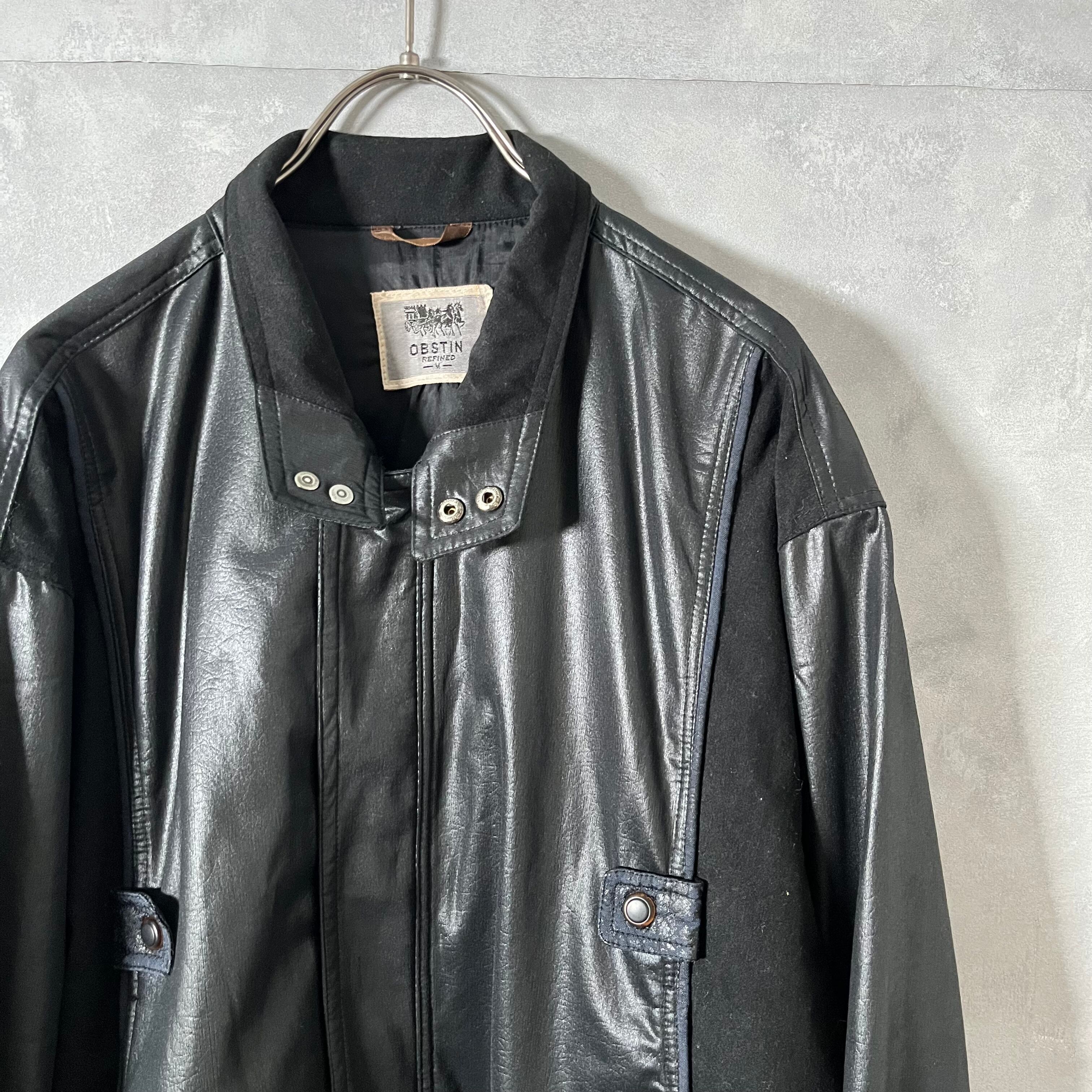 #5374 fakeleather×wool switch design short blouson jacket
