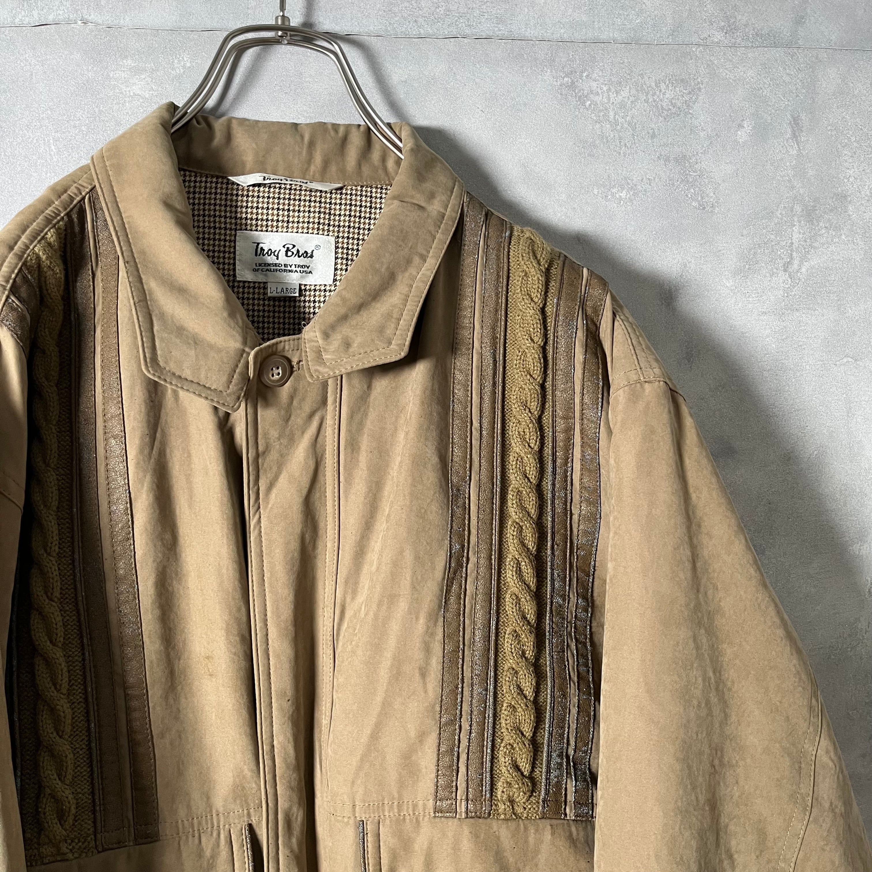 #5872 cableknit×fakeleather design short blouson jacket