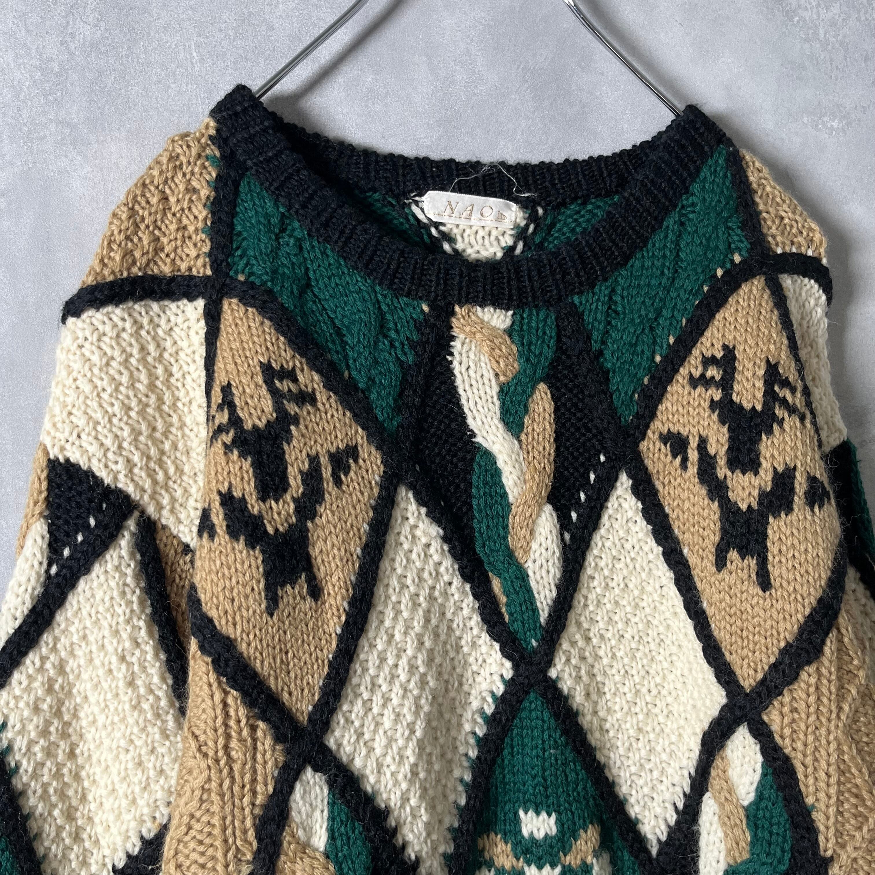 #5942 retoro argyle pattern multicolor design wool knit